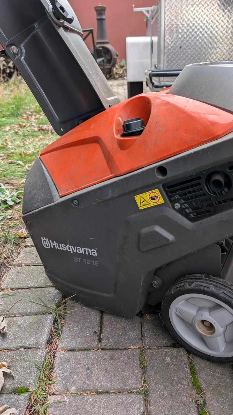 97The Husqvarna ST 121E is a single-stage snow blower designed for clearing snow on driveways, paths, porches, and decks. It is generally recommended for light to moderate snow conditions. ❄️ Key Features Electric Start: It features a push-button electric starter that plugs into a 120V wall outlet. This ensures reliable starting, eliminating concerns about a dead battery in cold weather. Auger-Propelled Drive: As a single-stage machine, the rubber-bladed auger engages the ground to pull the unit along. This acts as a power-assist system, reducing the effort needed for pushing. Remote Chute Rotation: The discharge chute can be easily rotated (up to 180 degrees) from the operator position, allowing you to direct the snow without stopping the machine. LED Headlight: An efficient LED light is included to illuminate your path when working in low-light conditions like early mornings or late nights. Single-Hand Control: This feature allows you to operate the snow blower with one hand, leaving the other free to adjust the chute or other controls.