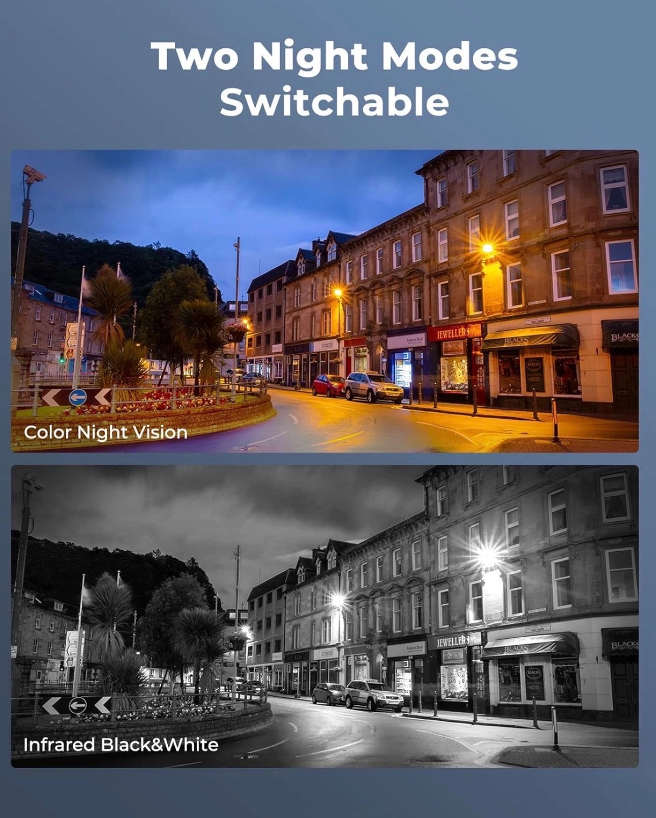 FULL COLOR NIGHT VISION -- The Spotlight of the 12MP outdoor surveillance cameras enables a full color night vision. You can schedule it to work at a time period and switch to IR LED mode other time flexibly. The spotlight can also be Motion-activated to deter intruders working with the siren.