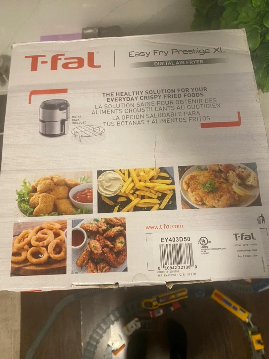 T-fal Easy Fry Prestige XL digital air fryer for healthy, crispy fried foods. It features 4.2L capacity and a removable metal holder. Little to no oil is needed for cooking!