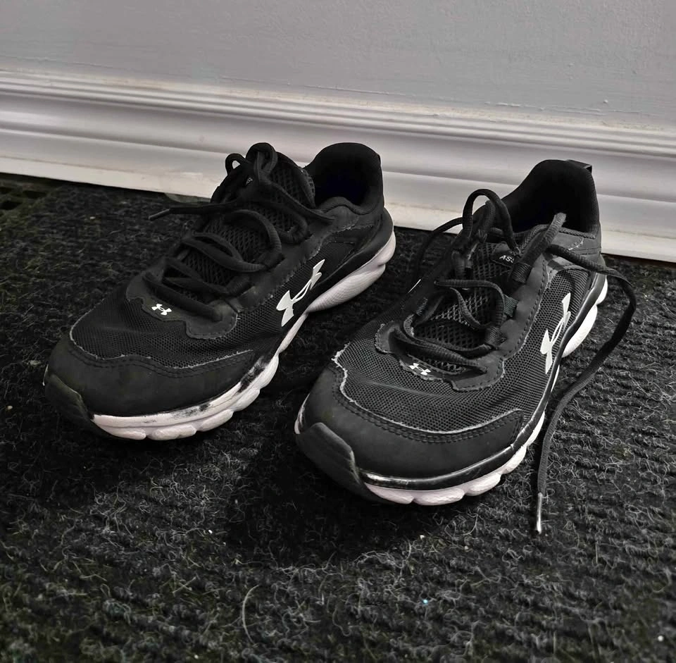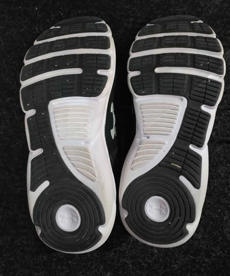Barely used, black color makes it a timeless shoe, gender neutral sneaker. Brand is Under Armour - size 6 youth or close to a size 6 women's.