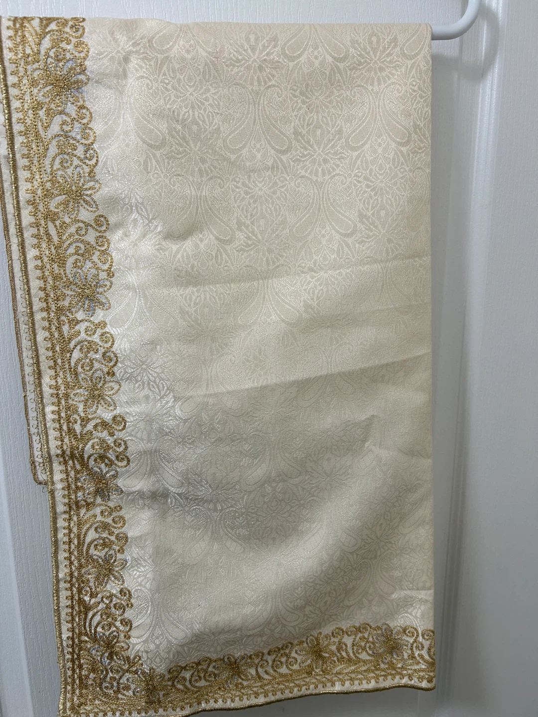 Beautiful off white shawl with intricate gold embroidery! It's in brand new condition and would be perfect with Sherwani, thanks