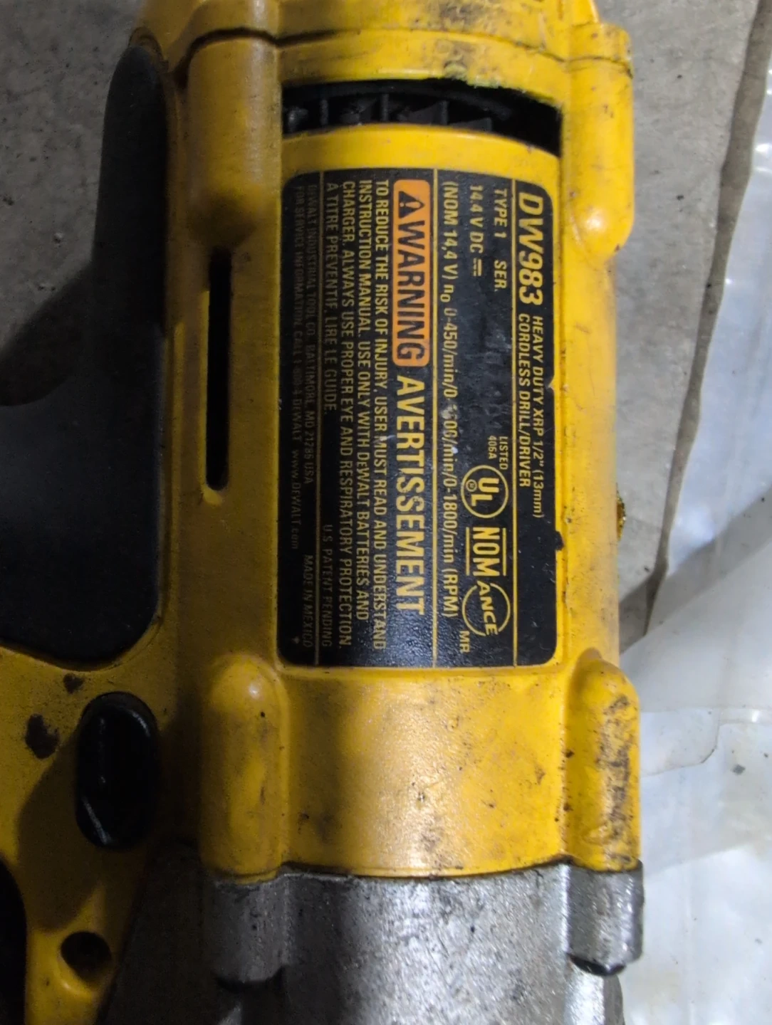 Buy & SellDeWalt DW983 Cordless Drill/DriverDeWalt DW983 Cordless Drill/Driver$20DeWalt DW983 heavy duty XRP cordless drill/driver. 14.4 V DC. Includes charger.WHERE TO MEETMcDonald Austin aveView MapSELLERverifiedsongCentral Coquitlam41530 reviews2 chats·1 favorites·17 viewsSEND CHAT TO SELLERHi song! I’m interested in your listing.Hi song! I’m interested in your listing.Get the Karrot app to chatSign In to chat