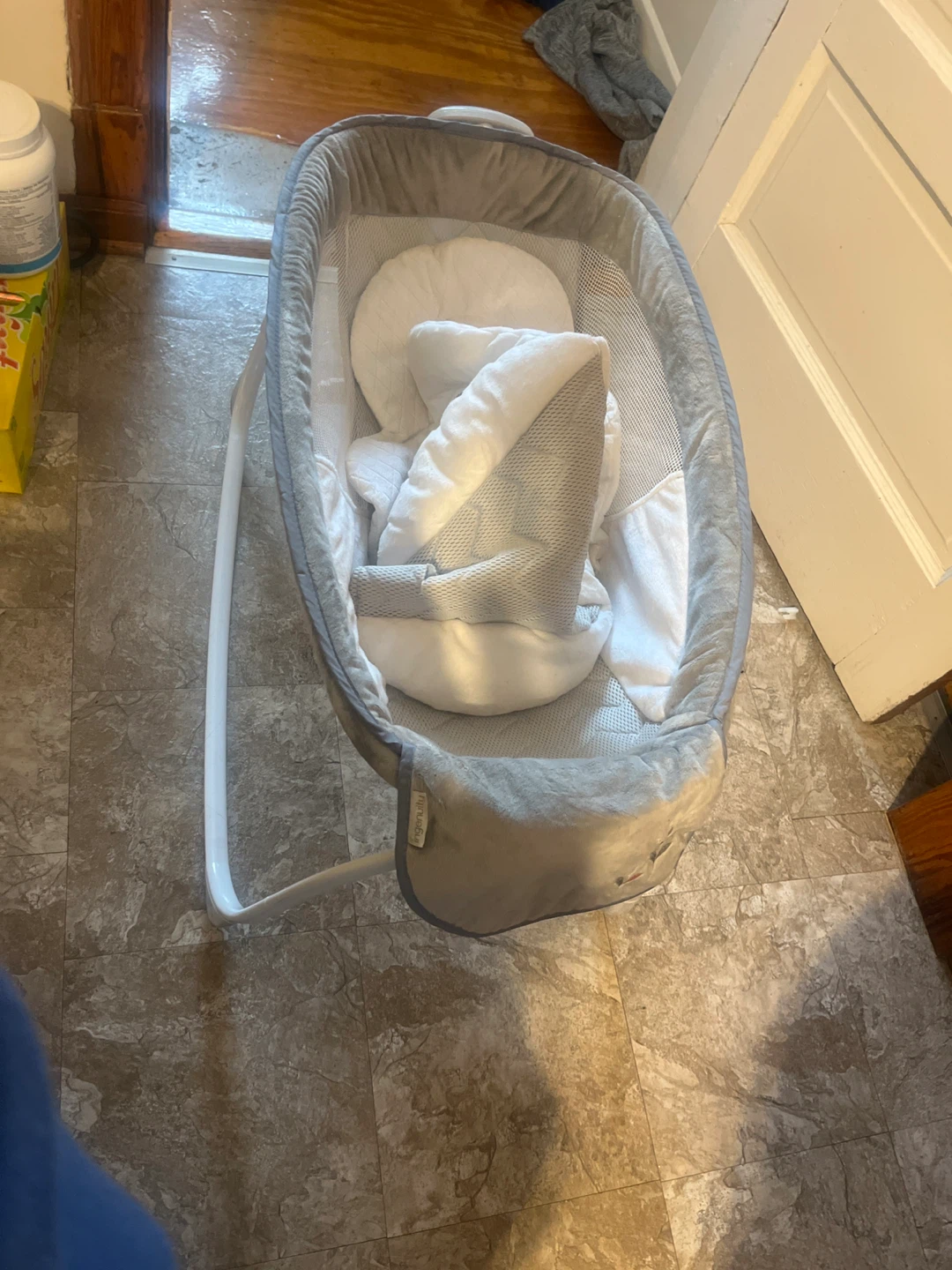 Selling an Ingenuity Foldaway Rocking Wood Bassinet in great condition! This bassinet is perfect for newborns and infants. It's lightweight and easy to move around the house. The neutral grey color will match any nursery decor