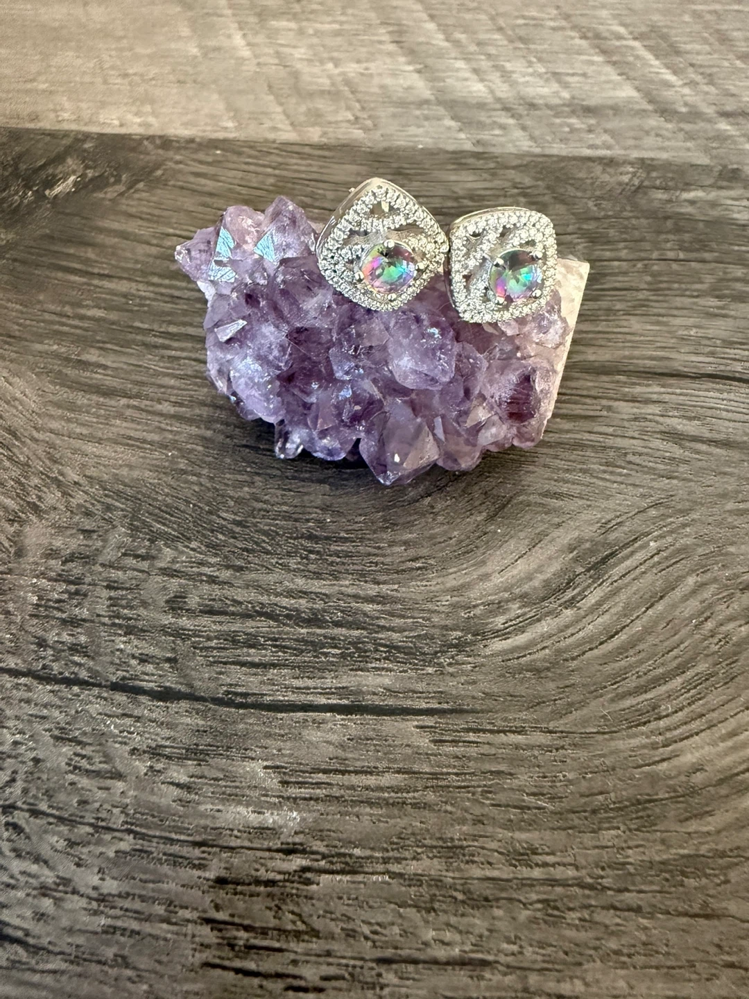 Mystic Topaz and Rhinestones Sterling Silver Studs