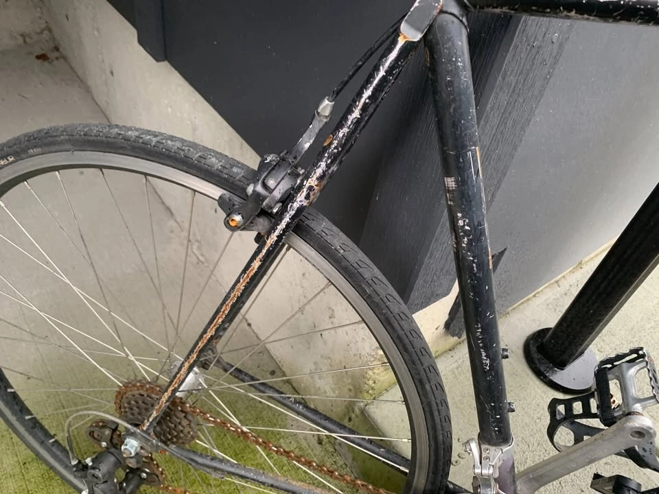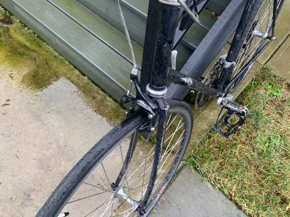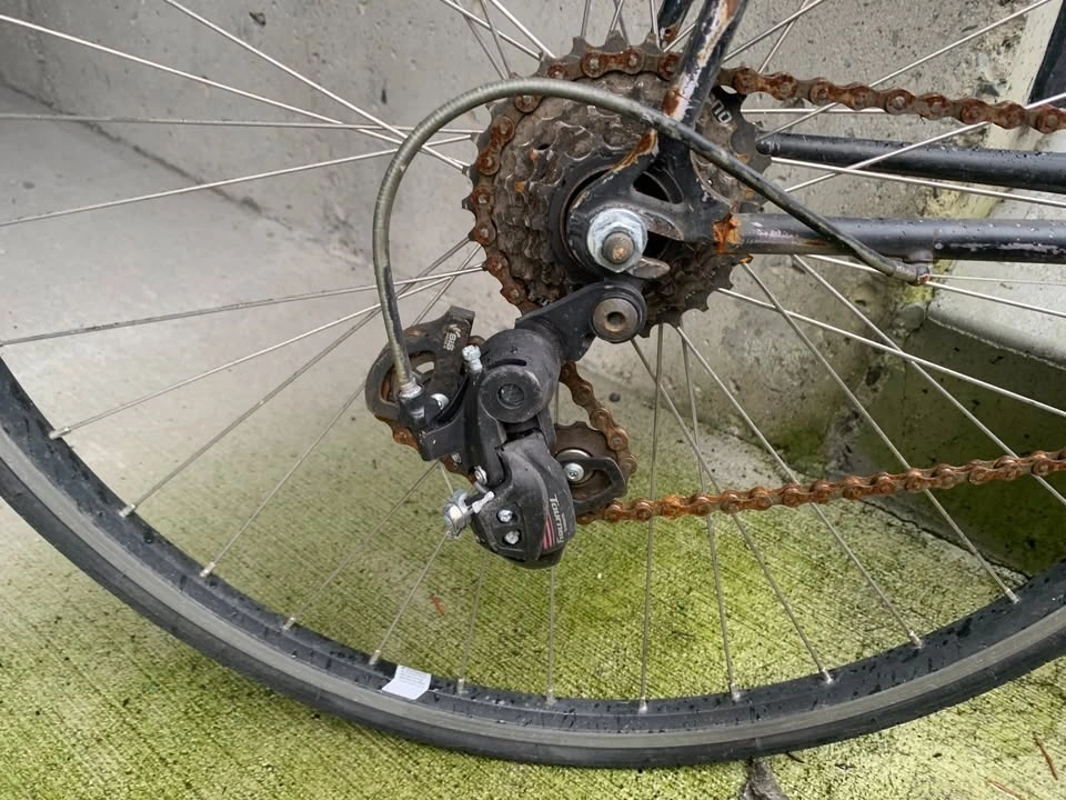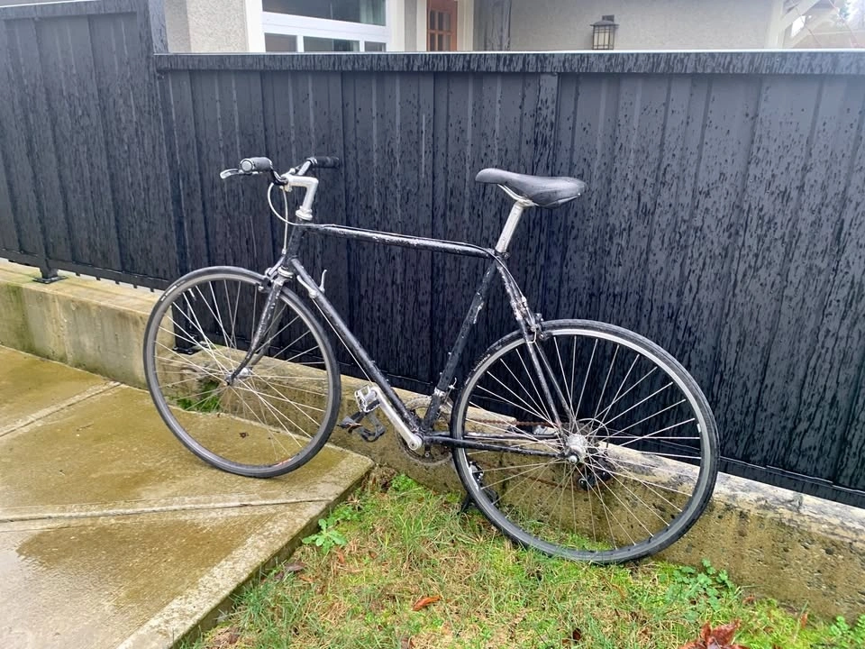 I bought this vintage road bike approximately 10 years ago and paid $600 or $700, at Mac Talla cycles. It was originally purple with drop handlebars, but I spray painted it black and added new handlebars. It is in rough condition right now. The crank needs to be replaced, it needs a new seat and rear tire tube, rust, plus some other attention needed. It's been exposed to the elements and needs some rust-proofing spray paint at the very least. Frame size: 22.5" (57cm). Wheel size: 28-inch (700c).