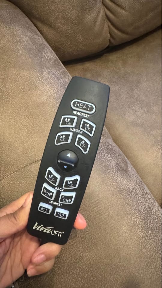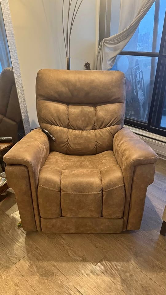 This medical recliner and lift chair comes with a heating option, a wireless phone charger, and a cup holder.