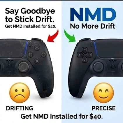 Don’t throw away your drifting PS5 controller. Upgrade it with NMD (No More Drift). I install premium TMR Joysticks—the newest tech that eliminates drift forever. Console: PS5 Controllers Only. Cost: $40 Flat Rate. Turnaround: Fast & Professional. Message me "NMD" to get started!
