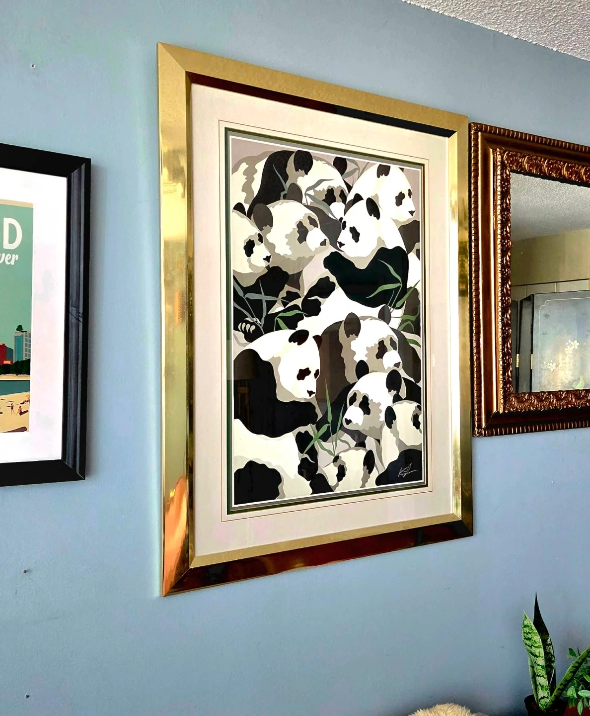 Large Gold Framed Collage Print of Pandas by Tom Taylor 1984