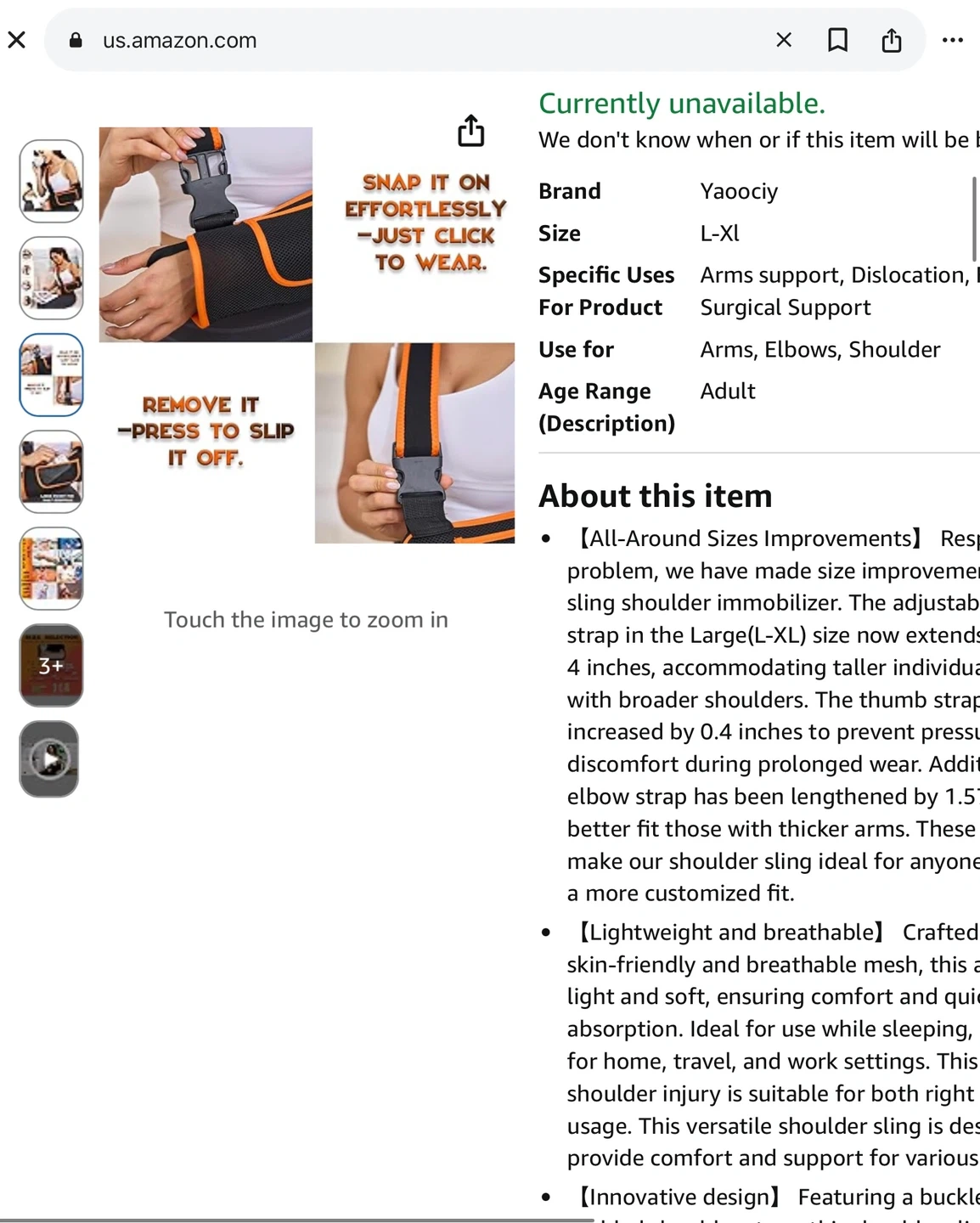 This Yaocııy arm sling is designed for post-surgical support, arm injuries, and dislocation. It's crafted from lightweight and breathable mesh for comfort. The adjustable strap and padded shoulder support offer a customized fit for both men and women. Gently used. Pet smoke free home.