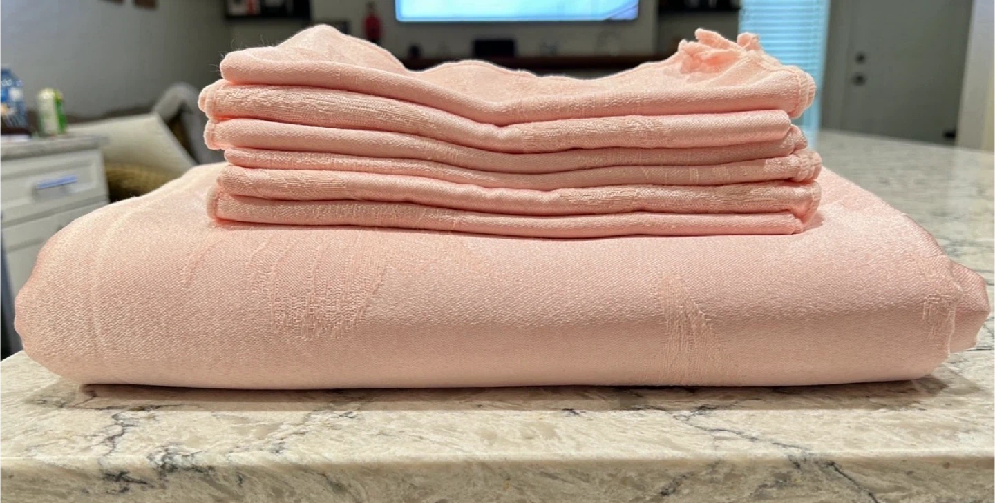 Medium Silky Polyester Soft Pink Table Cloth & 6 Cloth Napkin