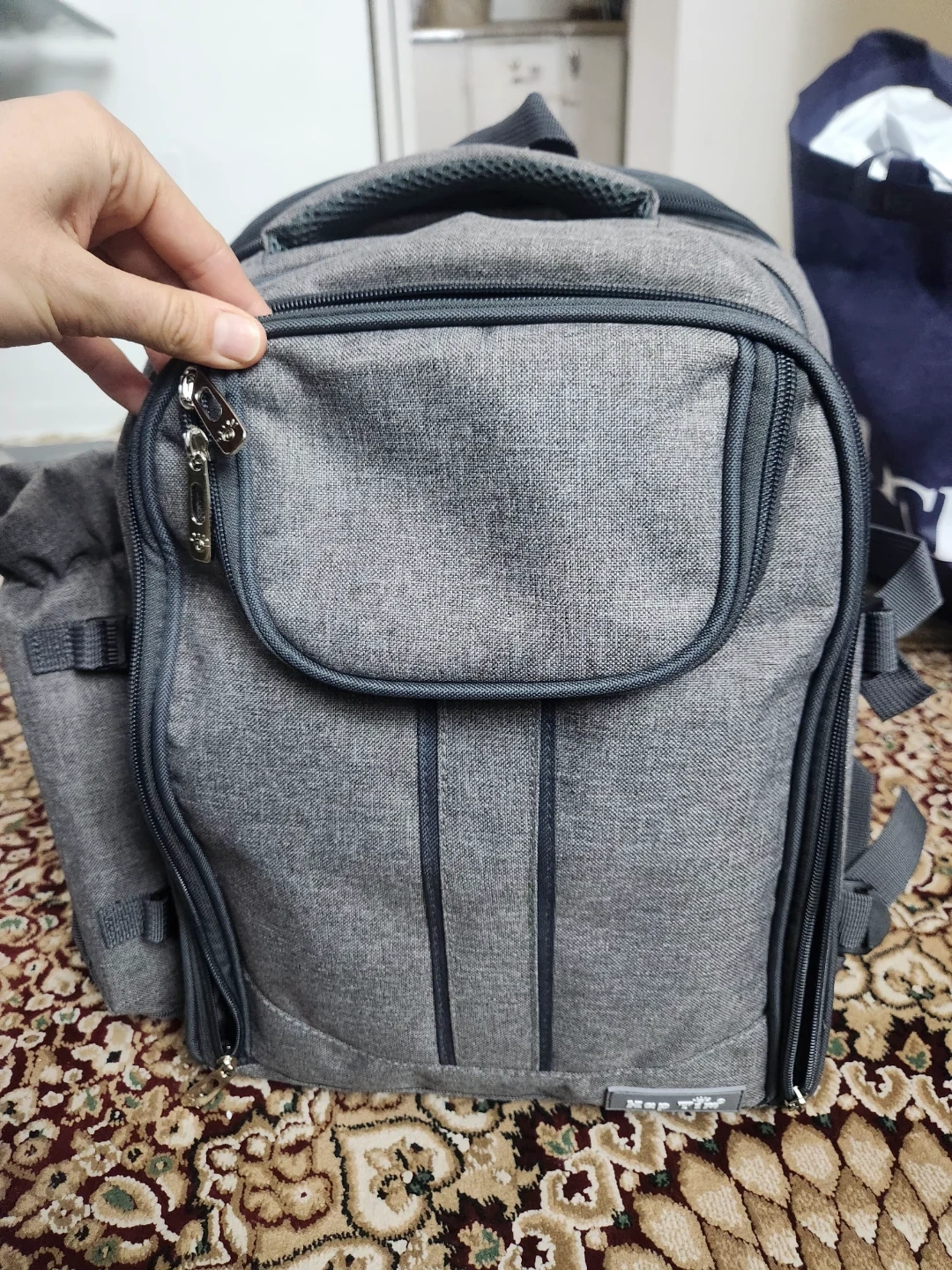 Grey Picnic Backpack with Utensils and Glasses