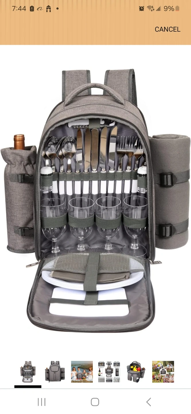 Grey Picnic Backpack with Utensils and Glasses