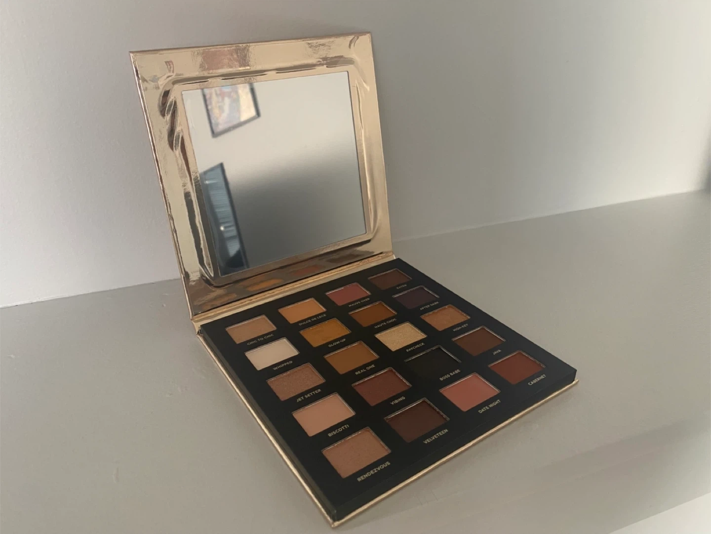 This ICONIC LONDON palette has 20 eyeshadow shades. It includes matte and shimmer finishes in a variety of warm tones.