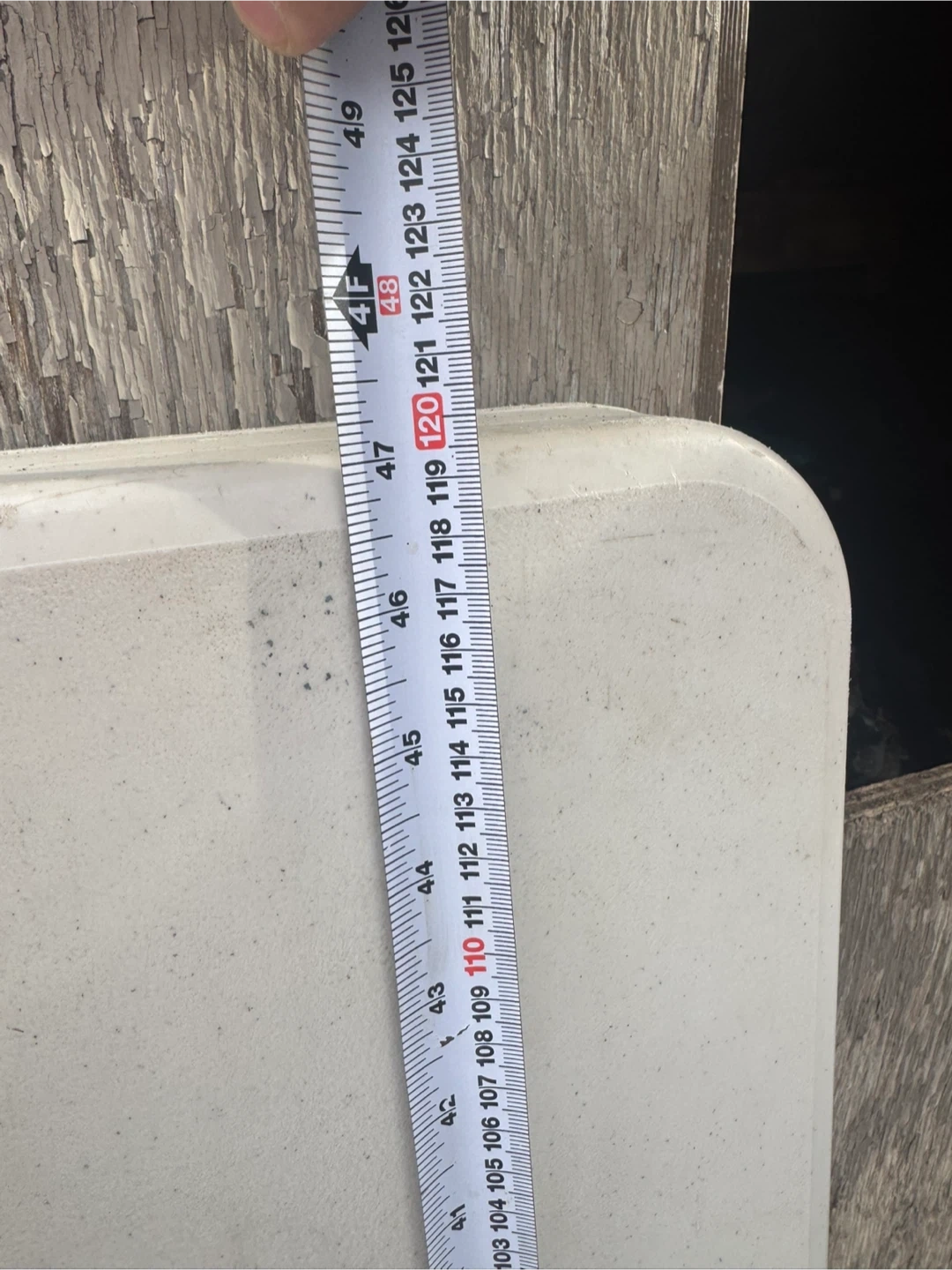This is a white Lifetime folding table. It's made of plastic with a metal frame and legs. The table measures approximately 48 inches wide and 30 inches deep when unfolded. It folds in half for easier storage and transport. Great for parties, events, or extra workspace!