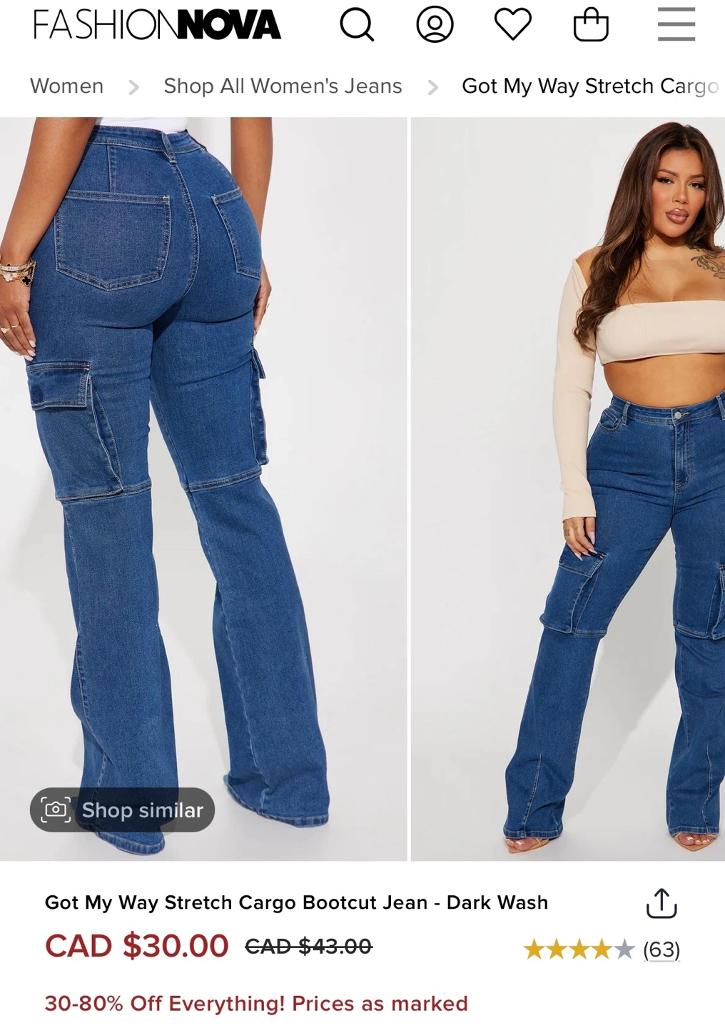 Never worn before - Dark wash denim jeans with cargo pockets and a bootcut silhouette.