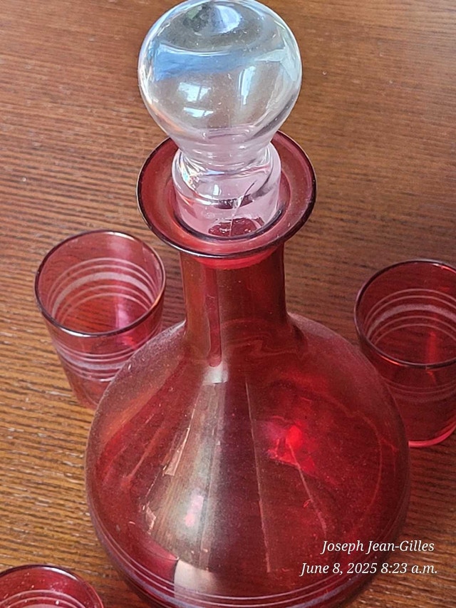 1 / 81 / 8Buy & SellVintage Cranberry Decanter & Glass SetVintage Cranberry Decanter & Glass Set$271 Vintage Cranberry Decanter and 5 shot glasses. All in very good condition. See pictures for details.WHERE TO MEETCheck LocationView MapSELLERverifiedJosephMaple711 review0 chats·0 favorites·5 viewsSEND CHAT TO SELLERHi Joseph! I’m interested in your listing.Hi Joseph! I’m interested in your listing.Get the Karrot app to chatSign In to chat