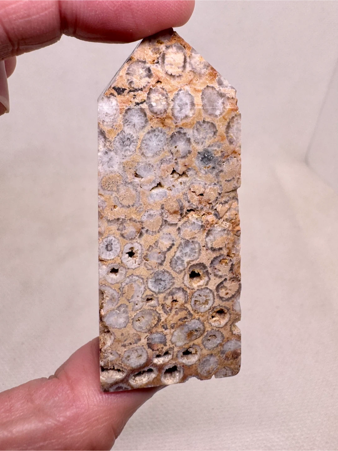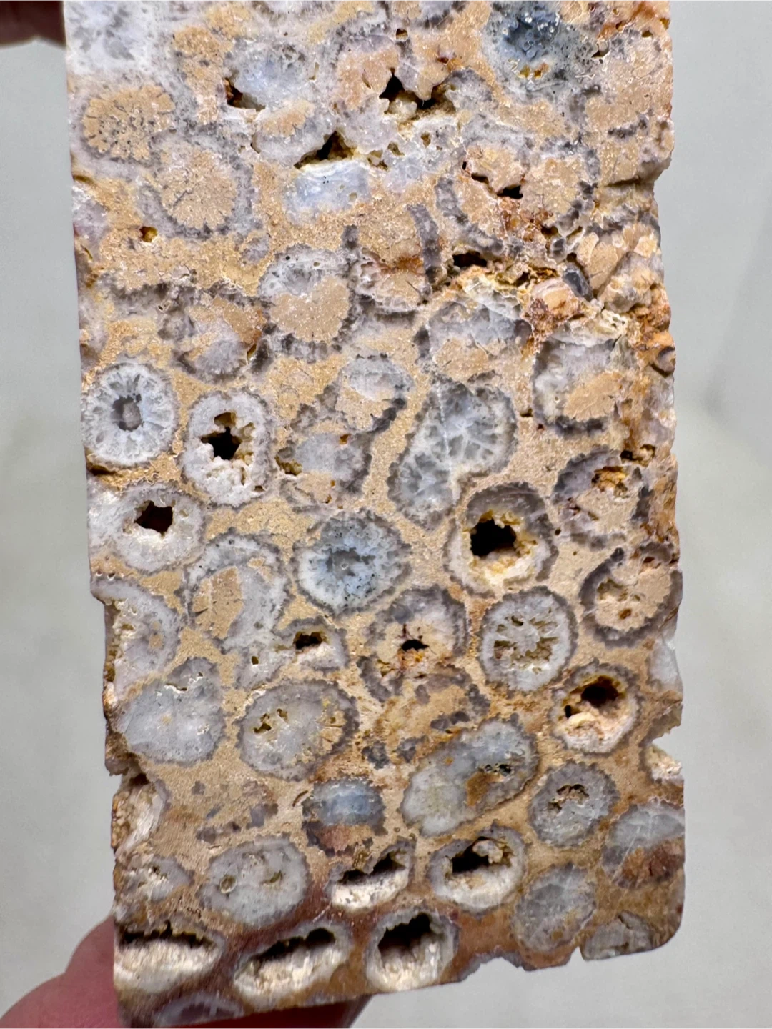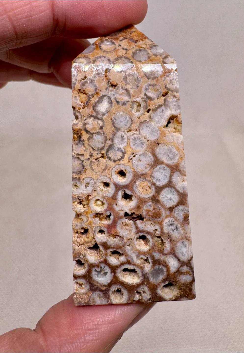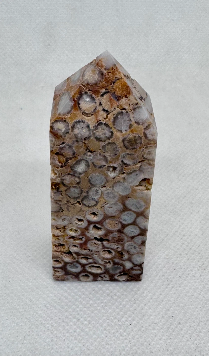 gemstone formed when prehistoric coral is gradually replaced by agate