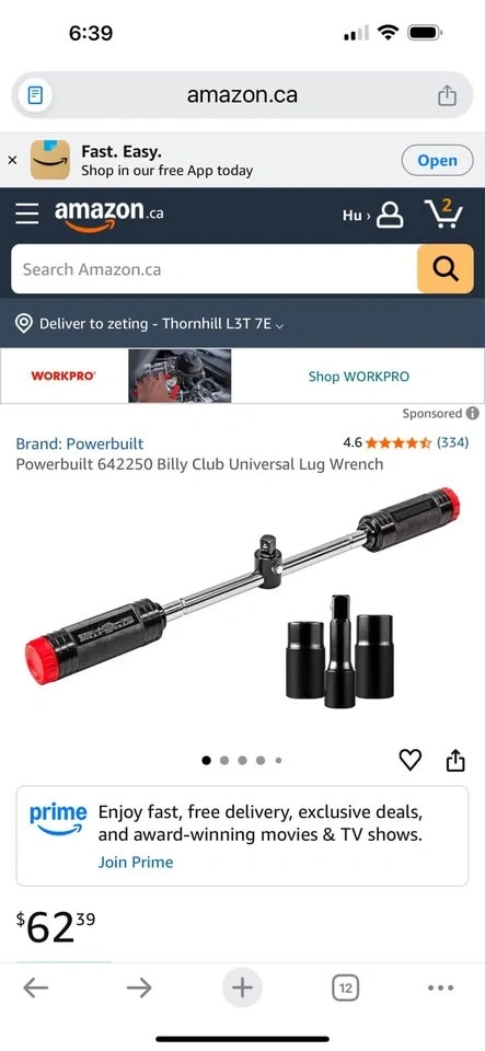 Almost new condition. Heavy-duty Powerbuilt Billy Club lug wrench. 1/2-inch drive compatible with any standard socket. Telescoping handles for maximum leverage. Great for roadside emergencies or shop use. Note: Sale is for the wrench bar only; sockets not included.