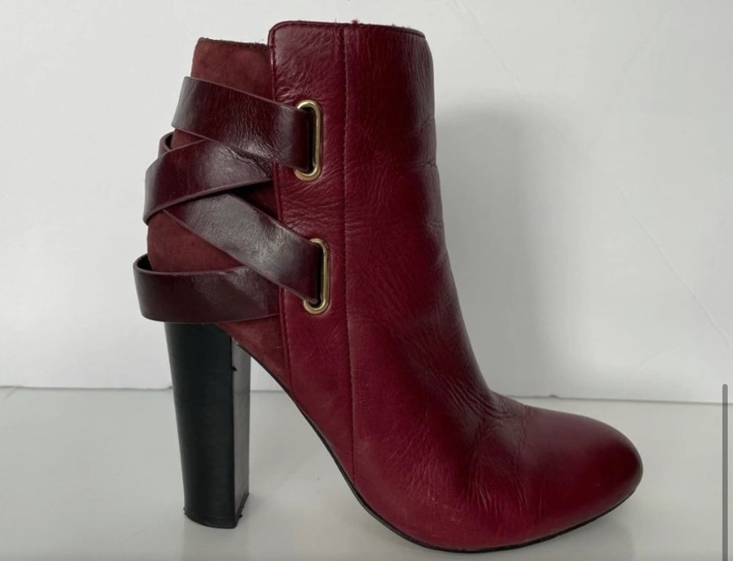 Burgundy Leather Ankle Boots