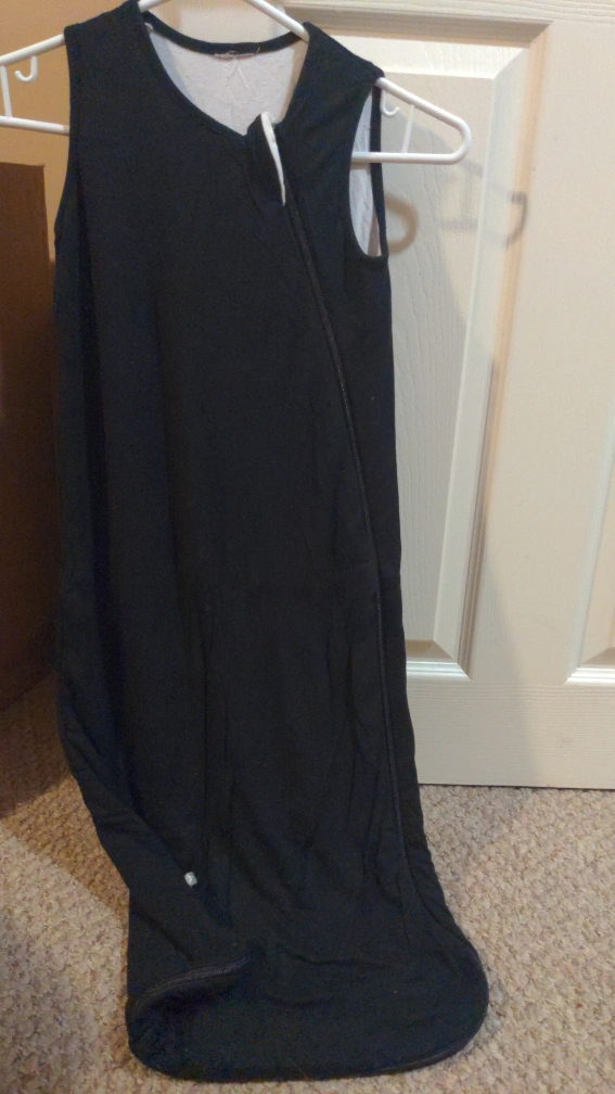 Black Kyte sleep sack, 18-36 months. Two small holes on the seam that can be easily stitched. Just decluttering and hoping it can find a good home.
