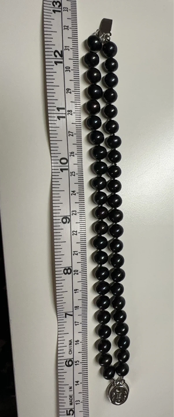 Double Strand Black Pearl Bracelet with Silver Clasp