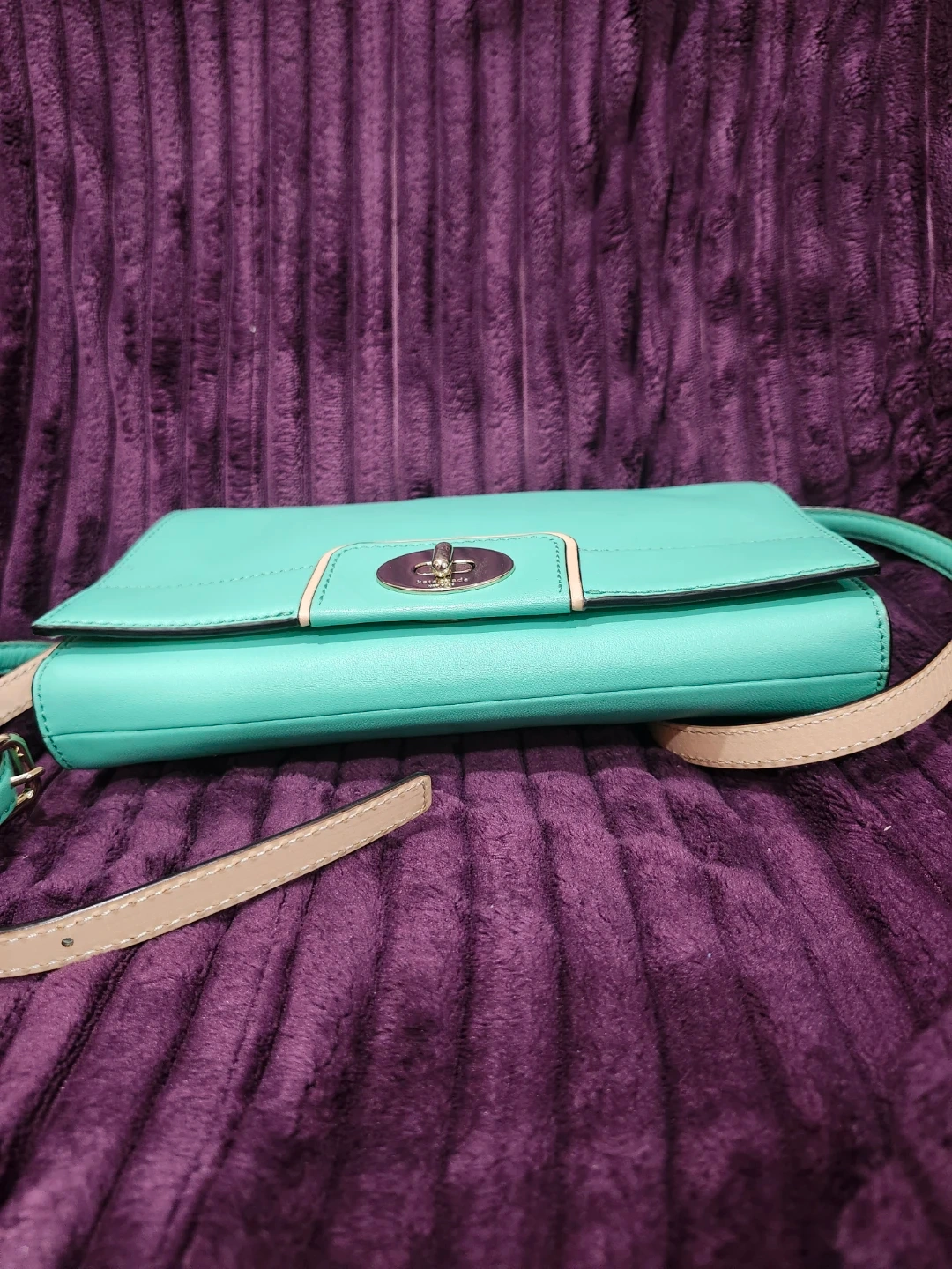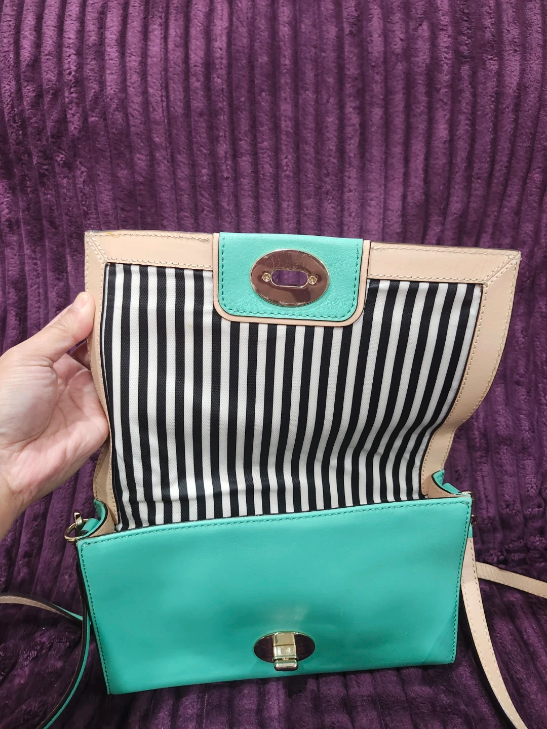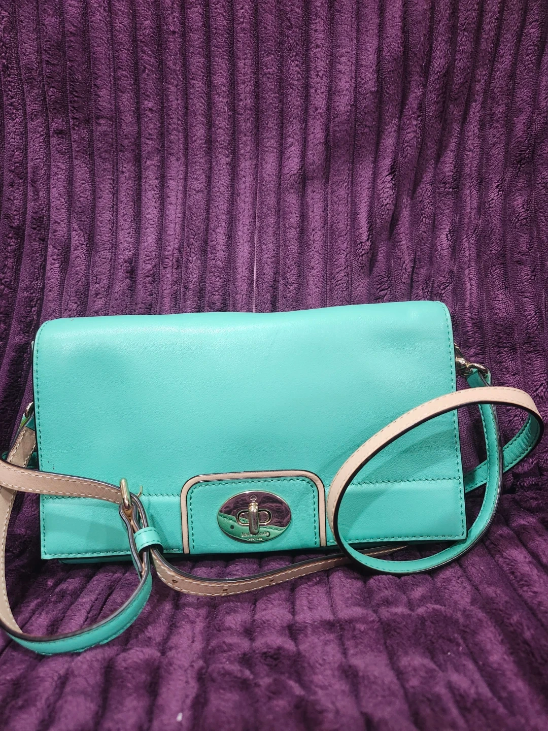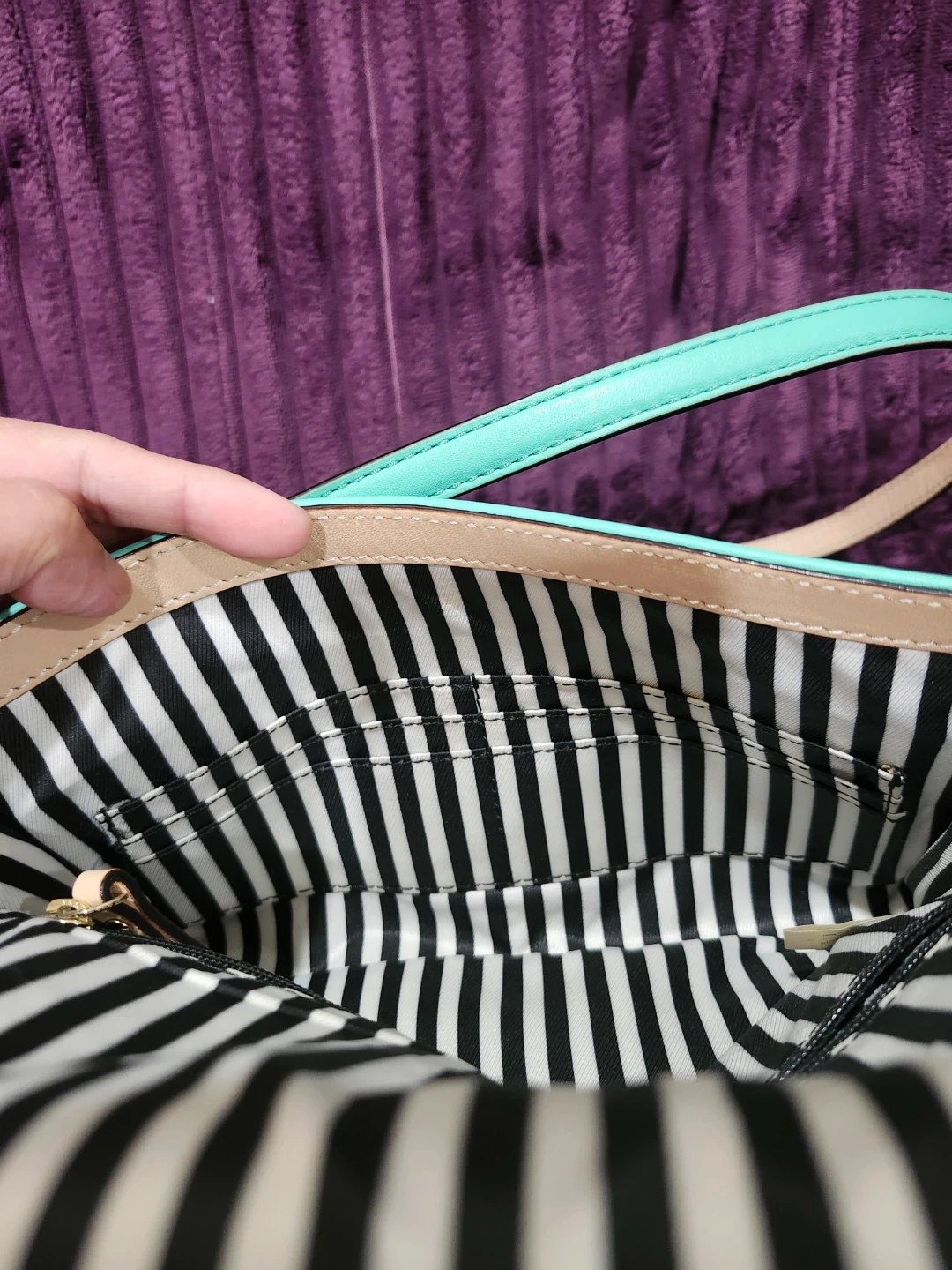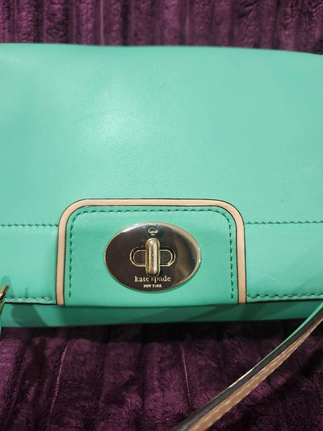 Selling a cute Kate Spade crossbody bag in a lovely turquoise colour. It's in good condition and perfect for everyday use! The interior has a black and white striped pattern.