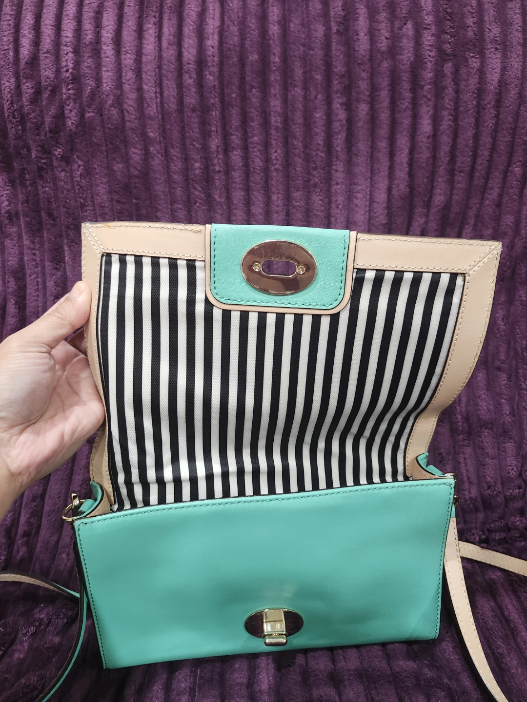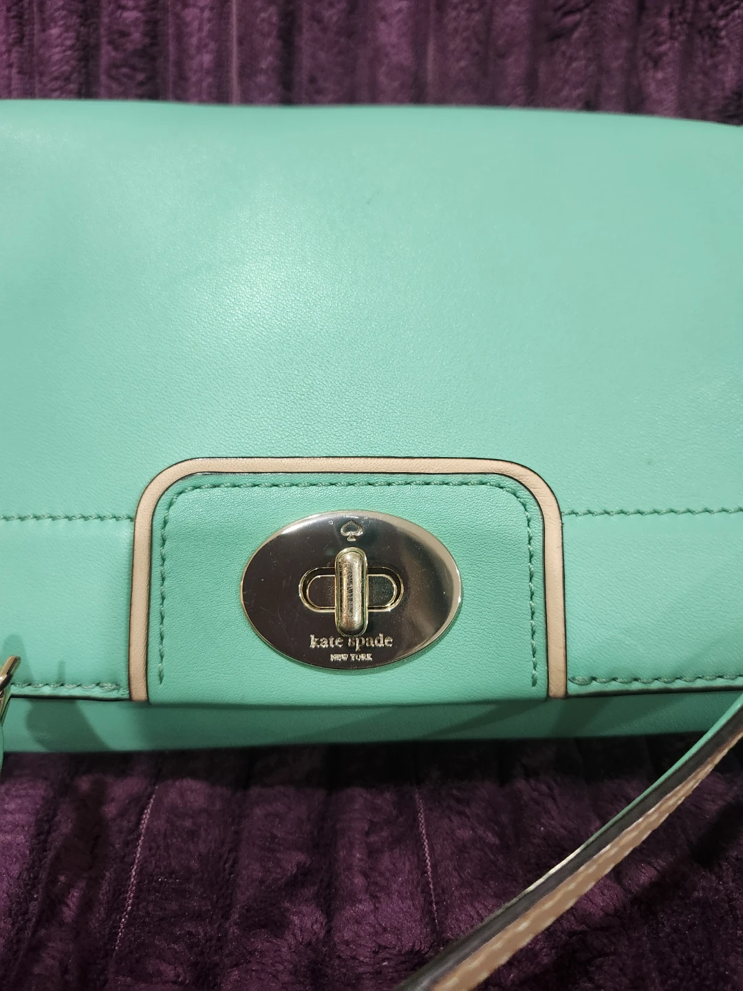 Selling a cute Kate Spade crossbody bag in a lovely turquoise colour. It's in good condition and perfect for everyday use! The interior has a black and white striped pattern.