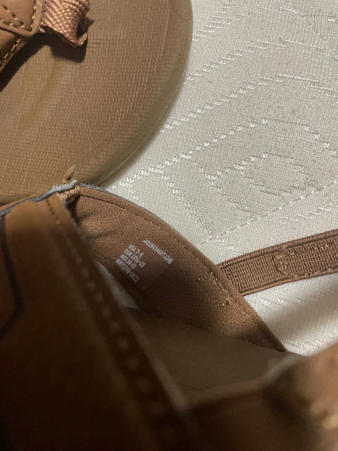 Selling a pair of brown leather sandals. They are size 7-8c (toddler) and in good condition. Perfect for casual wear!