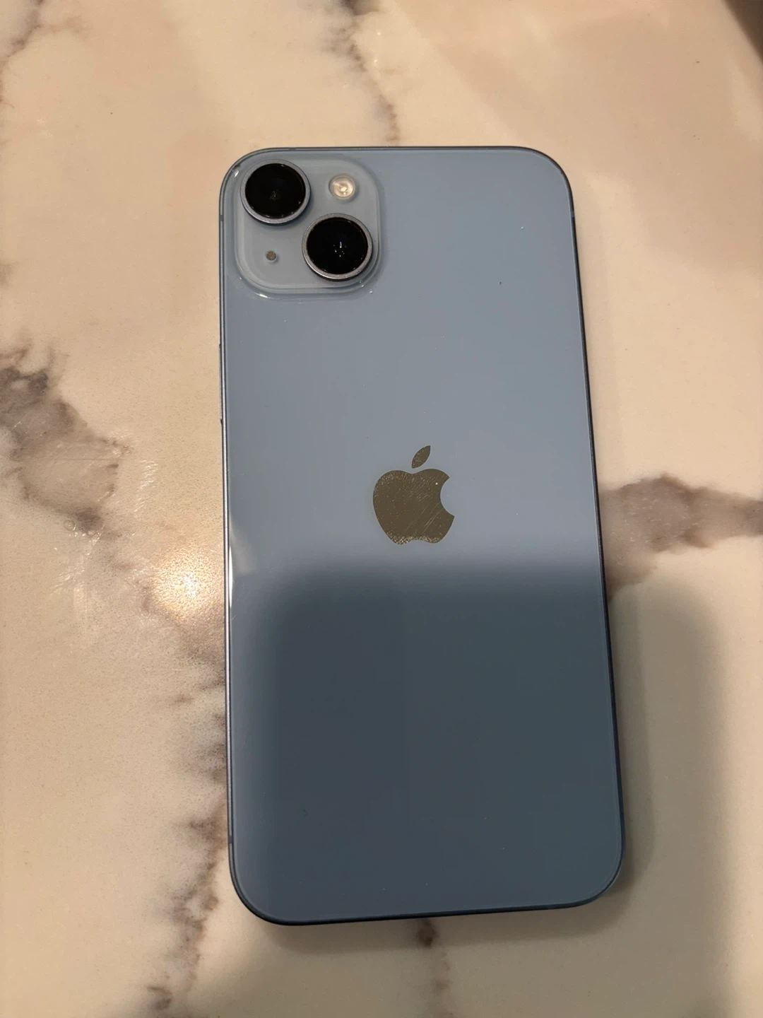 Selling my Light blue iPhone 14 Plus. Is one year old and has been kept in a case with a screen protector since day one. Includes a clear magnetic case. Condition: No scratches, dents or cracks. The battery health is great. Includes charging cable.