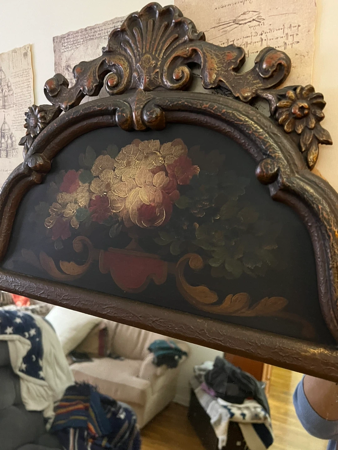 Antique Decorative Mirror with Floral Painting