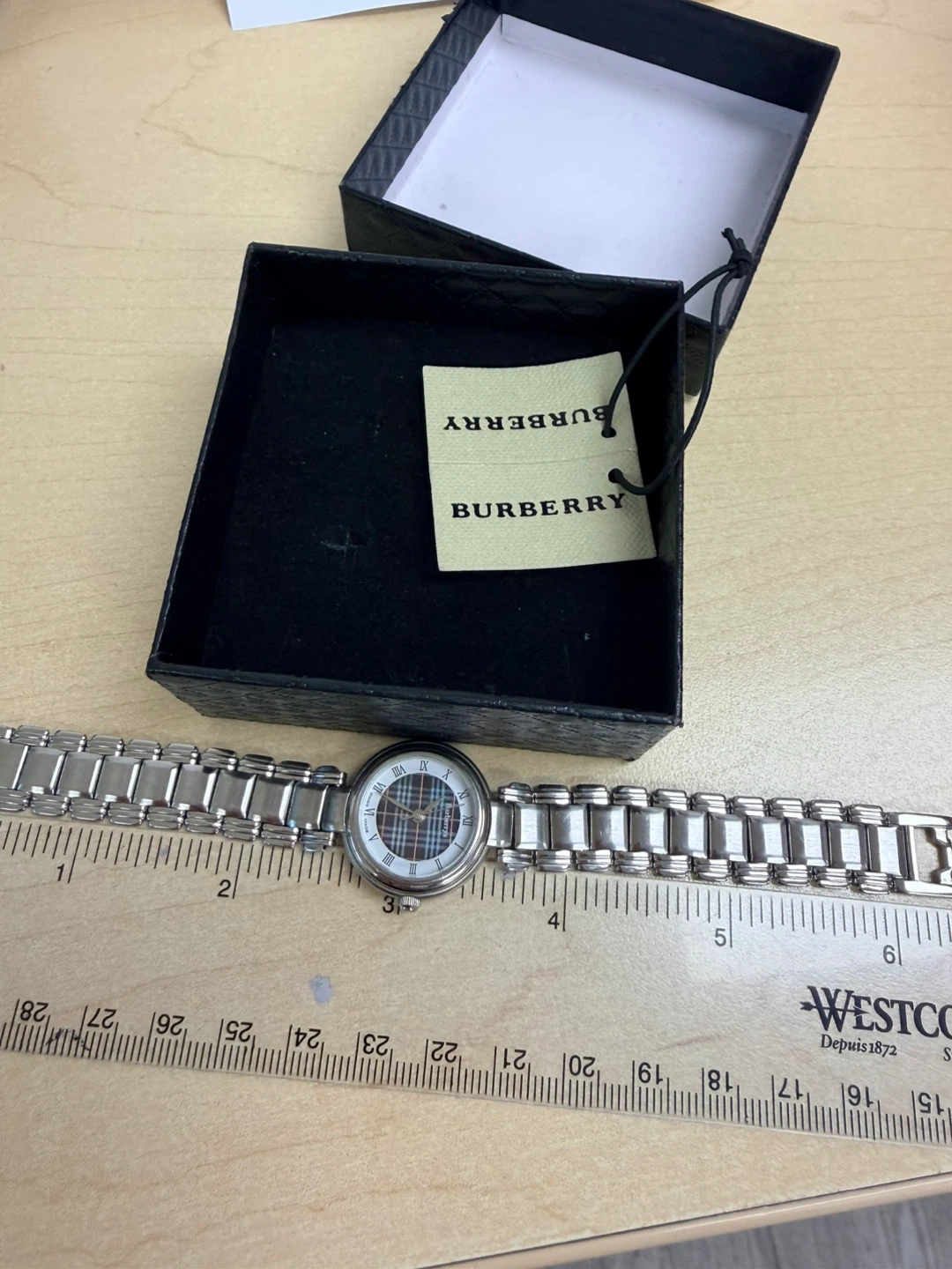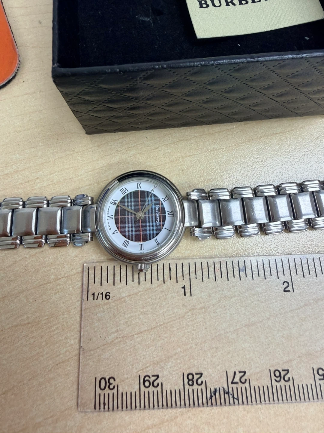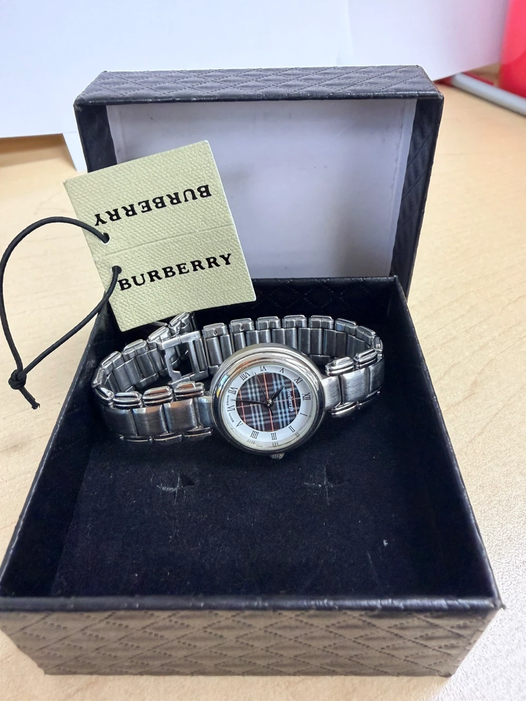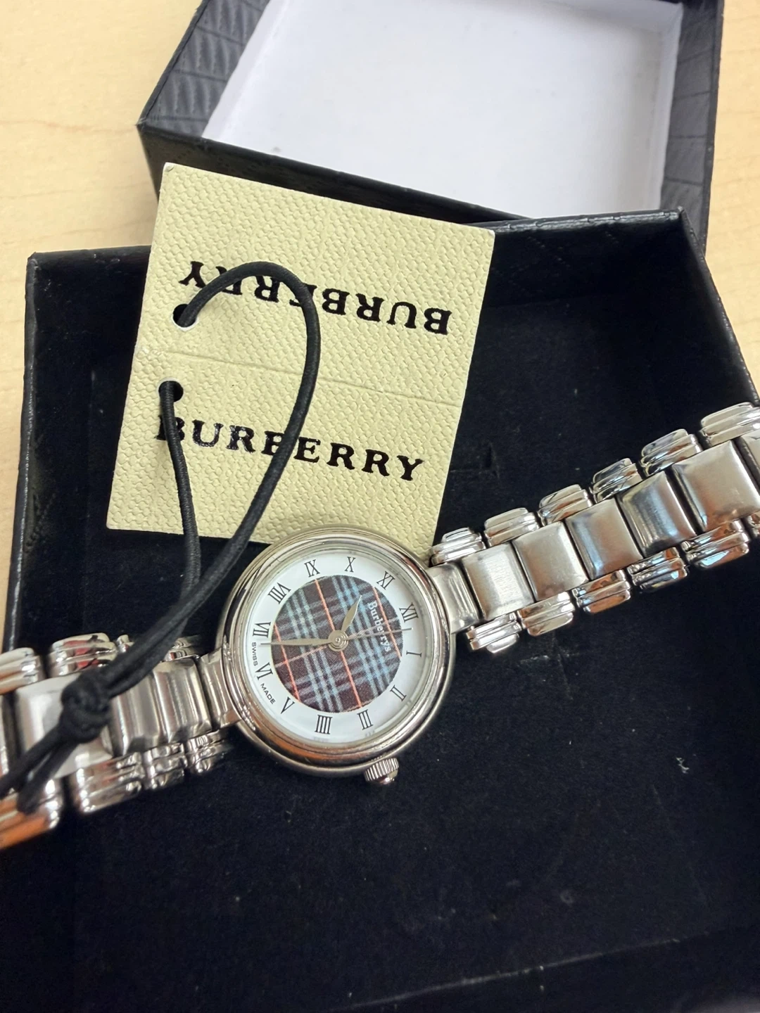 Buy & SellAuthentic Burberry Women's Swiss Made WatchAuthentic Burberry Women's Swiss Made Watch$263Burberry watch with a classic silver-tone metal band and a tartan dial. It's Swiss made with a stainless steel back.ConditionGoodSize22mmBrandBurberryWHERE TO MEETMetro • Bathurst & SteelesView MapSELLERverifiedMarilynThornhill S640 reviews0 chats·2 favorites·40 viewsSEND CHAT TO SELLERHi Marilyn! I’m interested in your listing.Hi Marilyn! I’m interested in your listing.Get the Karrot app to chatSign In to chat