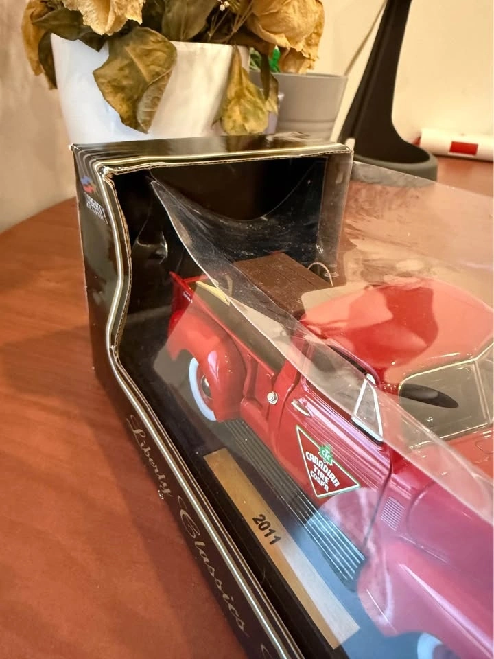 1952 Chevrolet pickup truck diecast model by Liberty Classics. Nice vintage-style collectible with detailed bed accessories and classic red finish. Great for display or for collectors of classic trucks. Model itself is in very good condition. Original box is included but in rough/creased condition from storage (see photos). Still a great display piece or addition to a collection. Brand: Liberty Classics. Model: 1952 Chevy Pickup. Condition: Very good (box in rough shape). Pickup: Near Square one Mall, Mississauga Mavis & Eglinton Ave intersection.