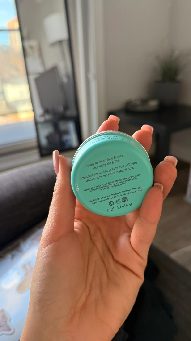 This lightweight smoothing moisturizer is designed for pores. Apply it daily to your face and neck, both AM and PM. It's a 50ml / 1.7 US fl. oz. container.