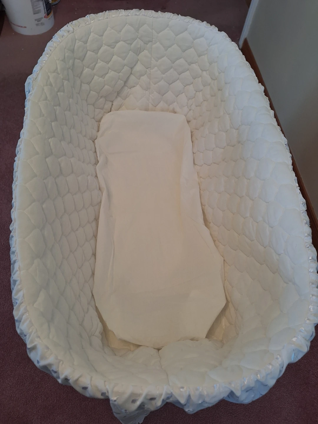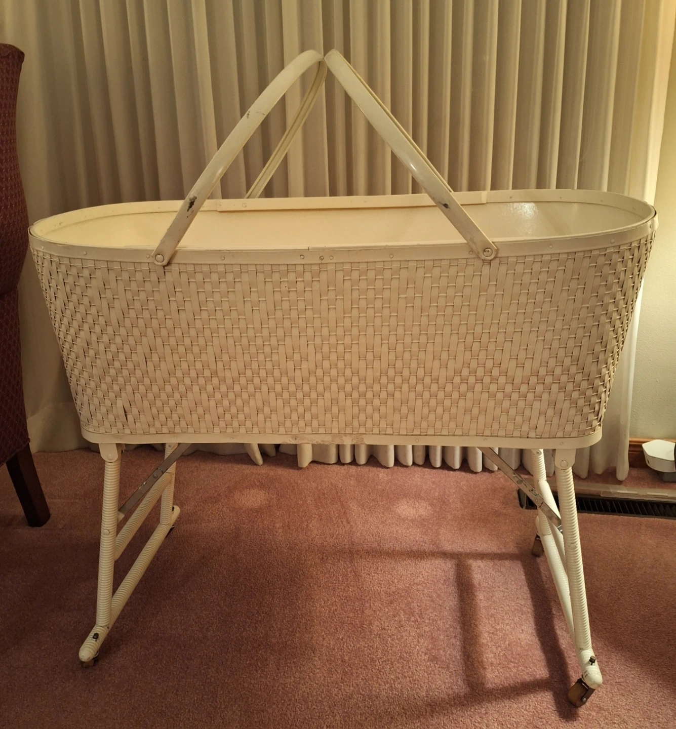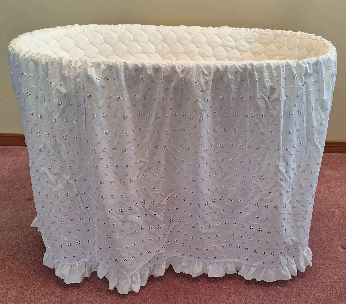 REDUCED Baby Bassinet with White Eyelet Skirt Cover