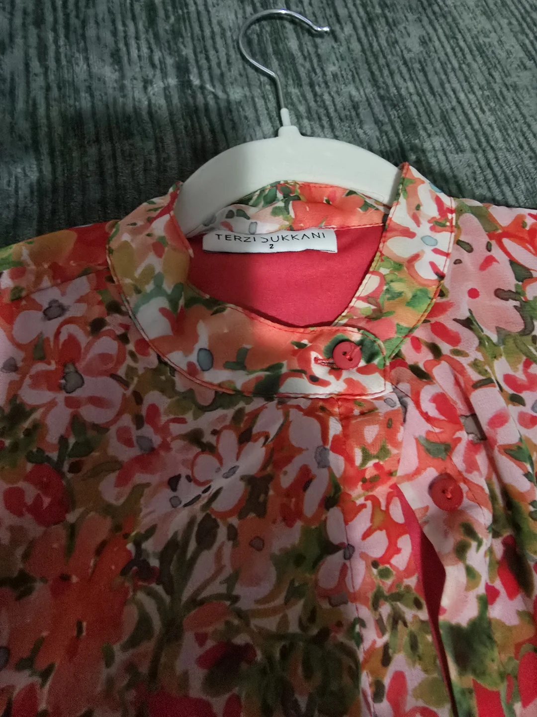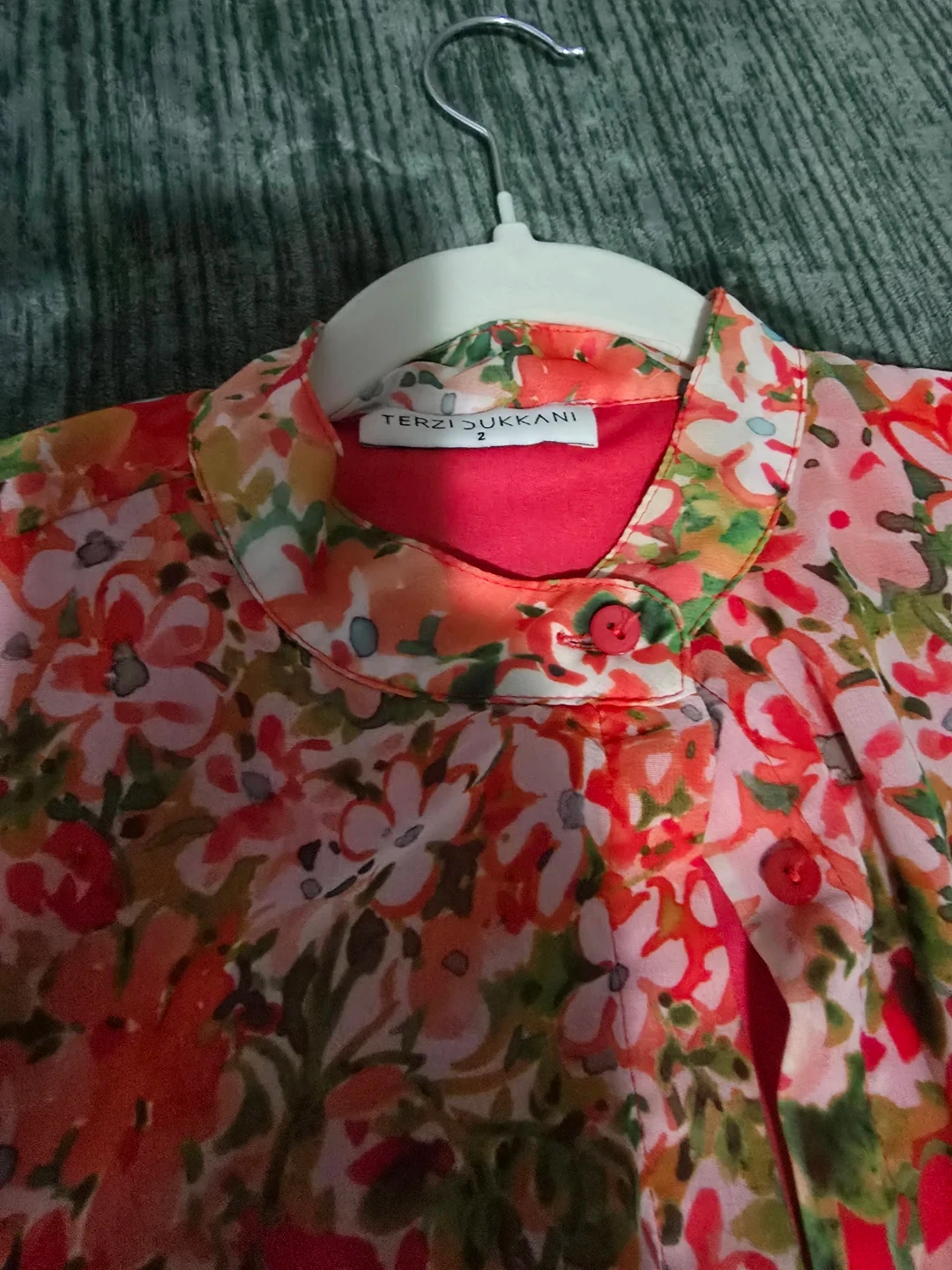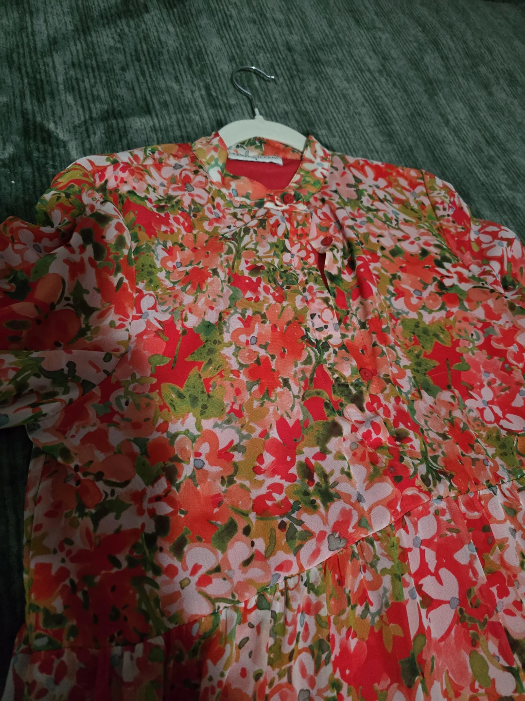 Pretty Terzi Sukkanni floral maxi dress. Features a vibrant floral print with long sleeves and a button-up neckline. It's lightweight and flowy!