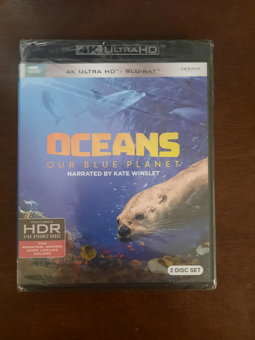 This is the Oceans: Our Blue Planet 2-disc set. It's narrated by Kate Winslet. Features HDR for brighter, deeper, more lifelike colours.