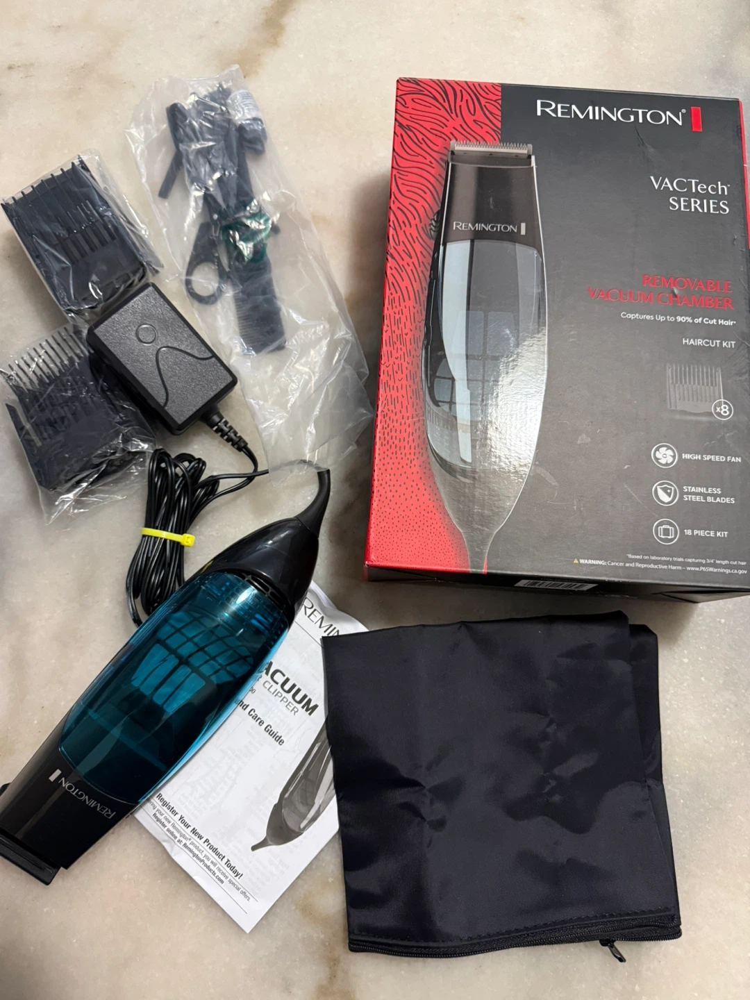 Description: Brand is Remington Model HKVAC2000B 18-Piece Vacuum Haircut Kit new in box!