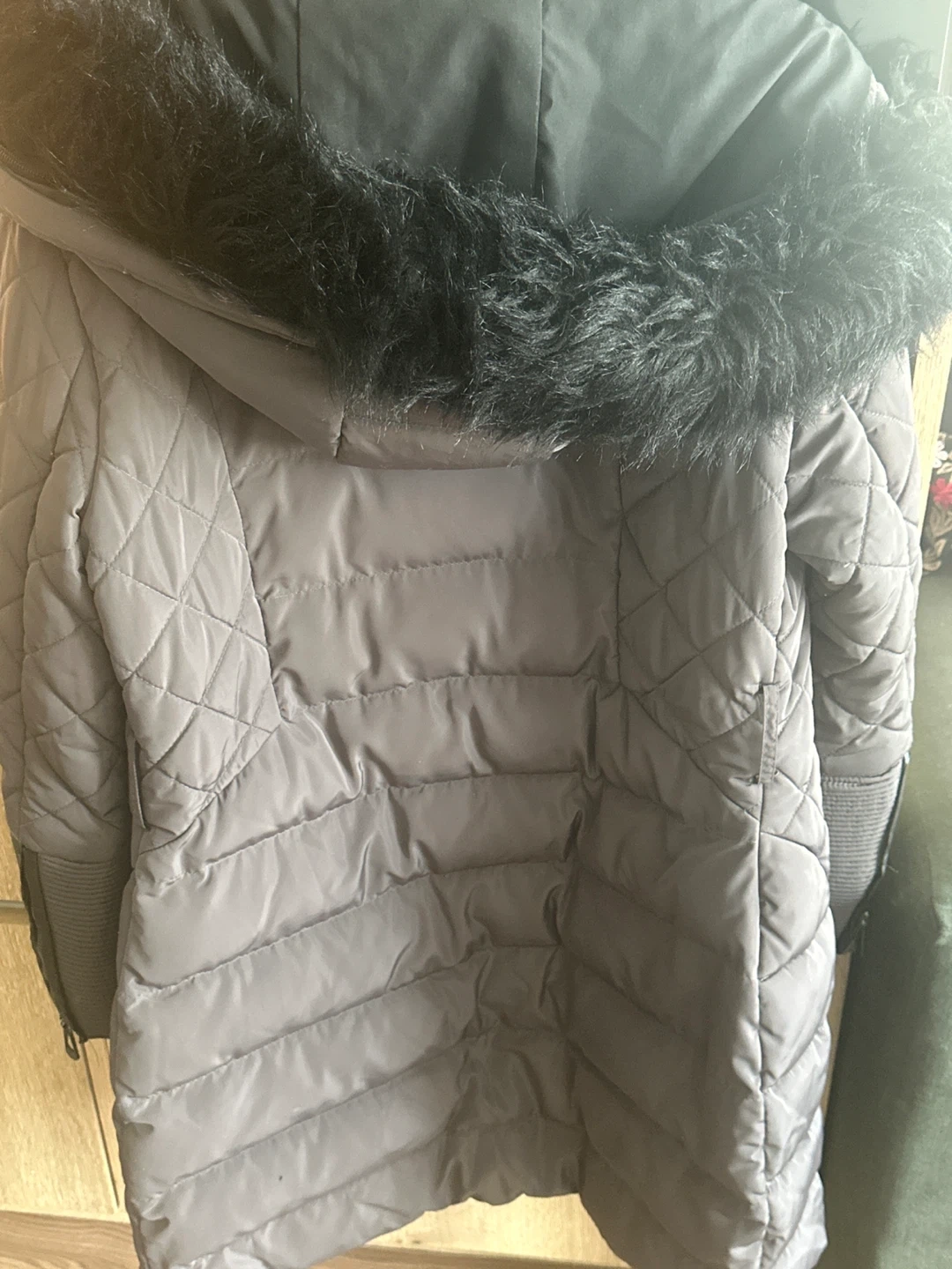 Here's a stylish Noize outerwear co puffer coat! It's a lovely neutral colour and features a cozy faux fur hood. Perfect for staying warm and fashionable during the colder months. It's in great condition and ready for a new home!