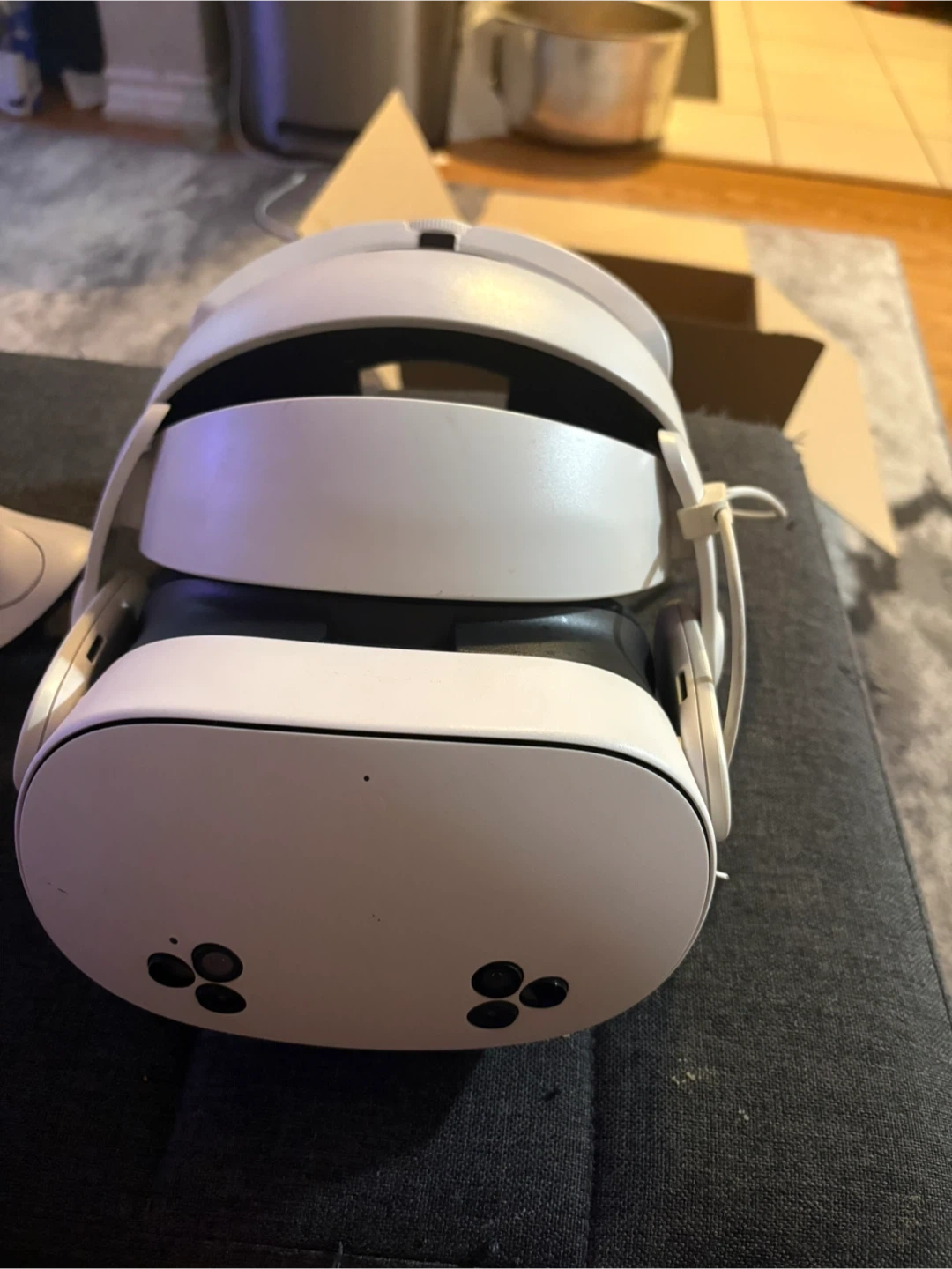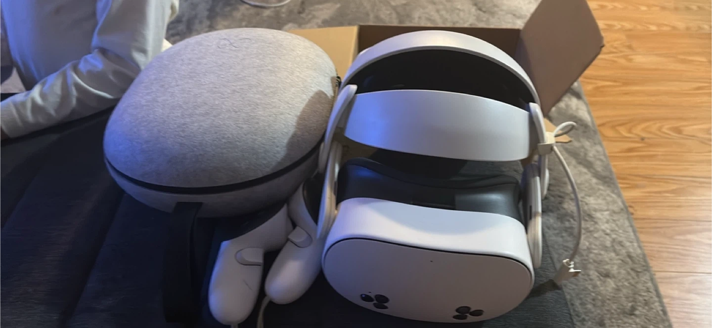 This is a Meta Quest 3s headset and two controllers. It includes the headset and controllers carrying case and chargeable batteries The headset has a grey fabric cover, it’s great fun and perfect for mixed and virtual reality it’s 256 gigabytes and perfect for movies games and more! Gently used ready for a new owner.