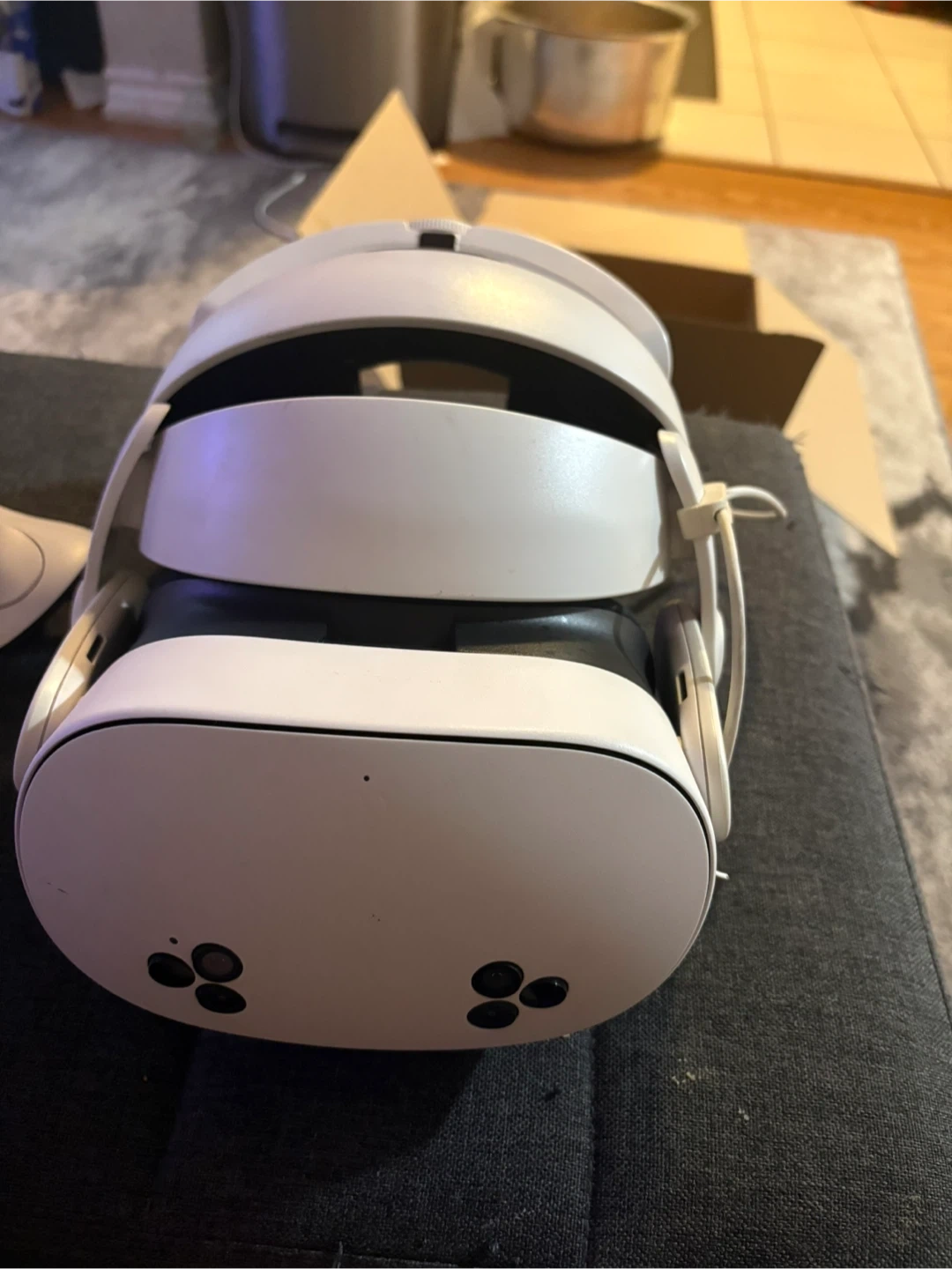 This is a Meta Quest 3s headset and two controllers. It includes the headset and controllers carrying case and chargeable batteries The headset has a grey fabric cover, it’s great fun and perfect for mixed and virtual reality it’s 256 gigabytes and perfect for movies games and more! Gently used ready for a new owner.