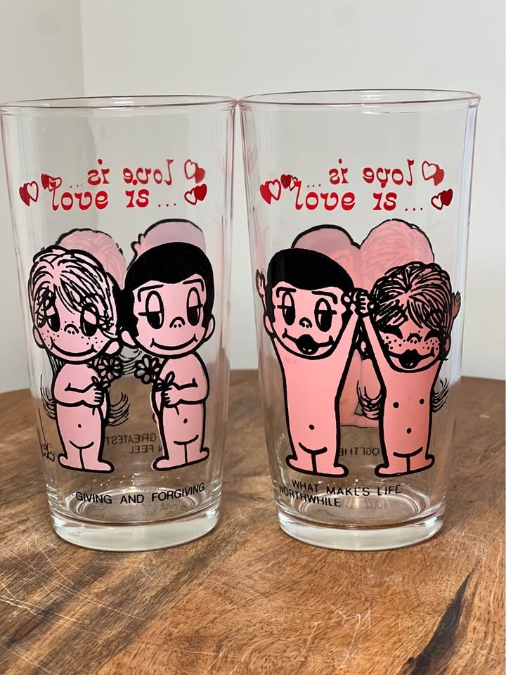 Vintage Love Is... Drinking Glasses (Set of 2) Kim Casali, 1970s