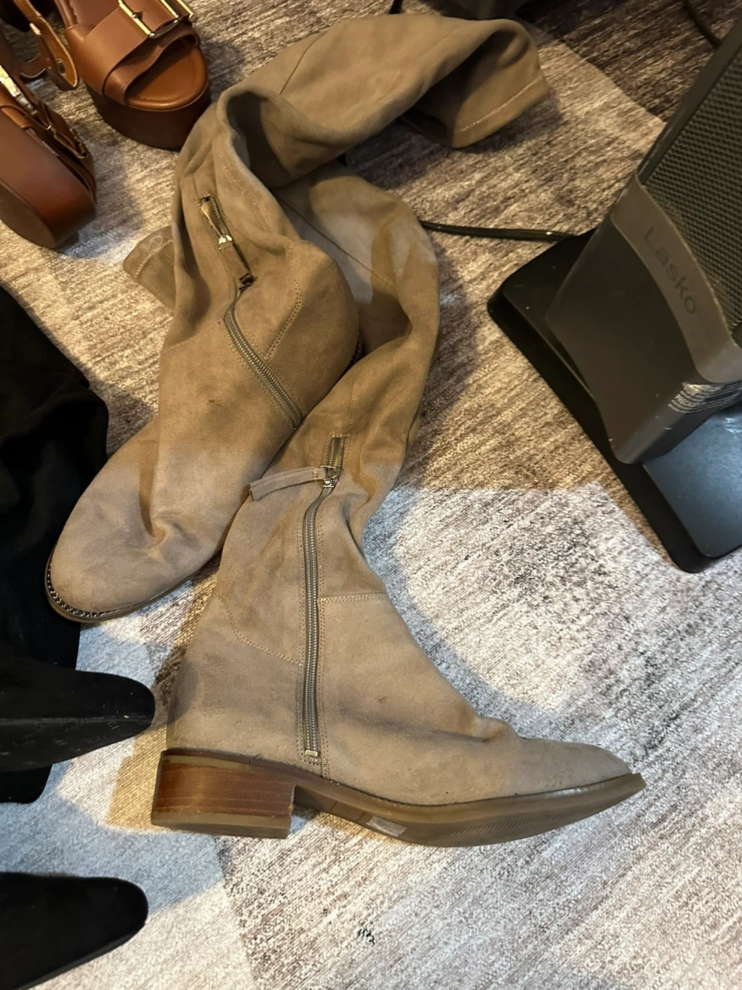 many sandals and boots different brand and style. 15 each. some new, other use 1 or twice. the boots one is ankle and the other two are knee height