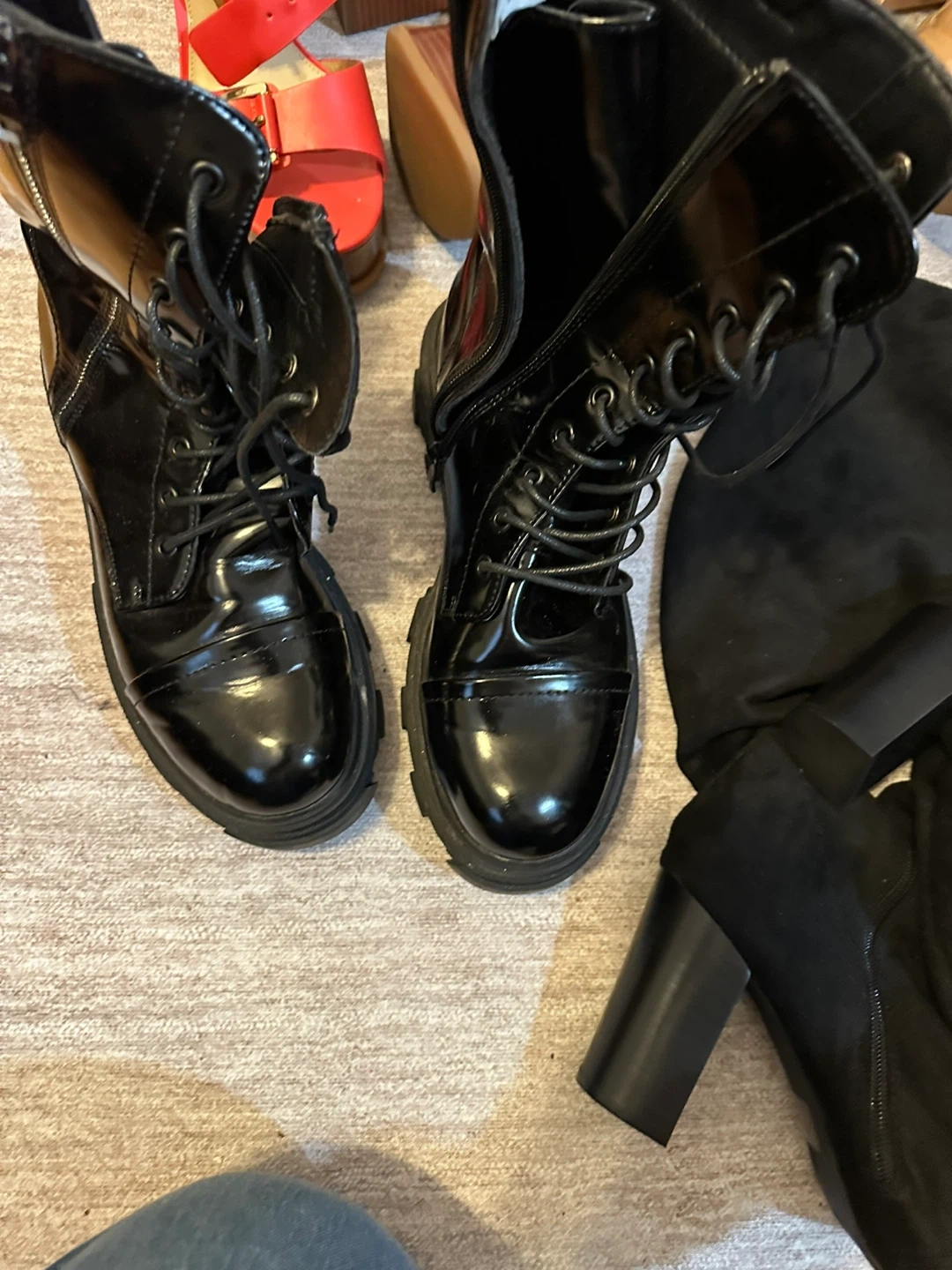 many sandals and boots different brand and style. 15 each. some new, other use 1 or twice. the boots one is ankle and the other two are knee height