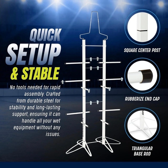 Multi-Sport Functionality - While designed for hockey, this drying rack is ideal for other sports equipment as well! Use it for football pads, gear, or any sports uniform that needs to dry thoroughly.