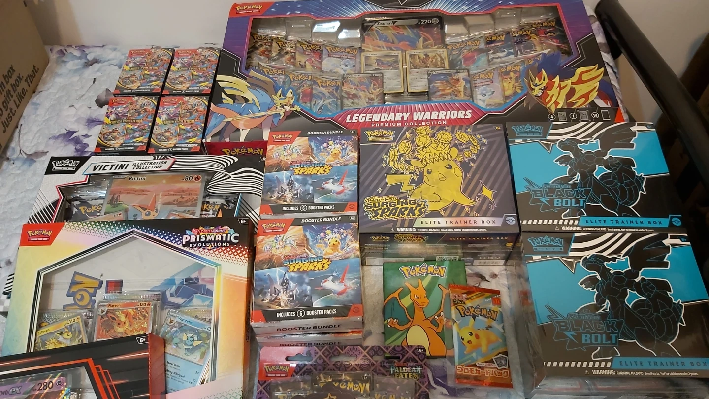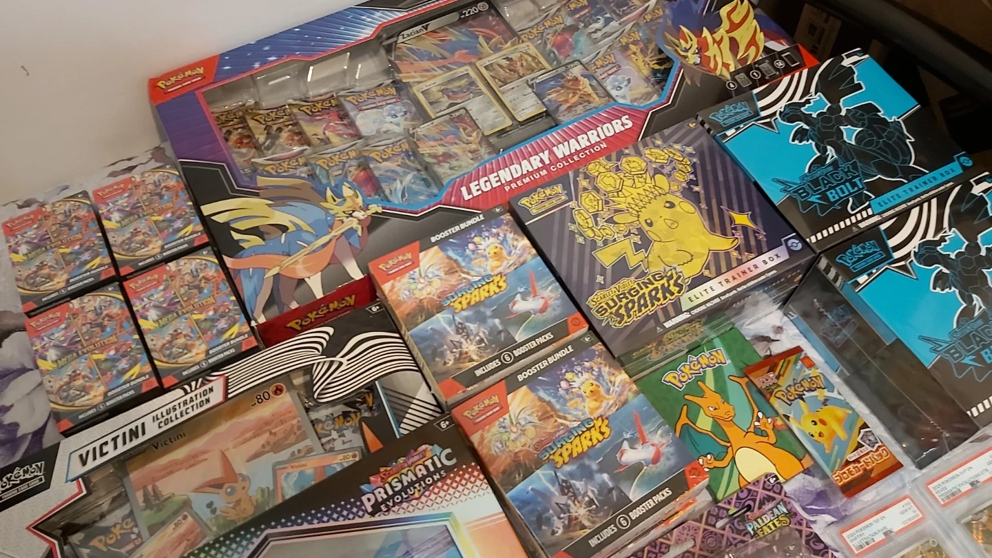 $2000 is the price for everything pictured. Legendary Warriors, sealed items. PSA 10 Moltres, Shiftry, Kingambit, Regigigas Cards, Mega Boosters Mewtwo Box, Booster Bundles, Victini Collection, McDonald's Pikachu