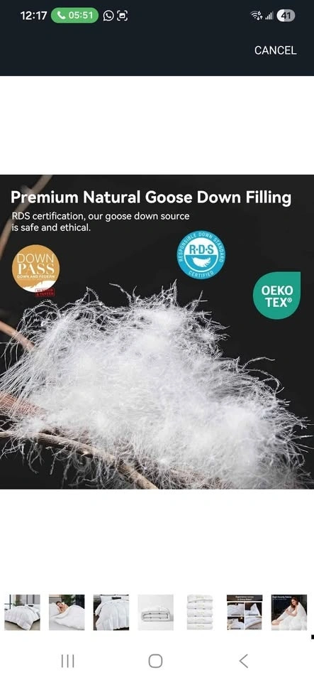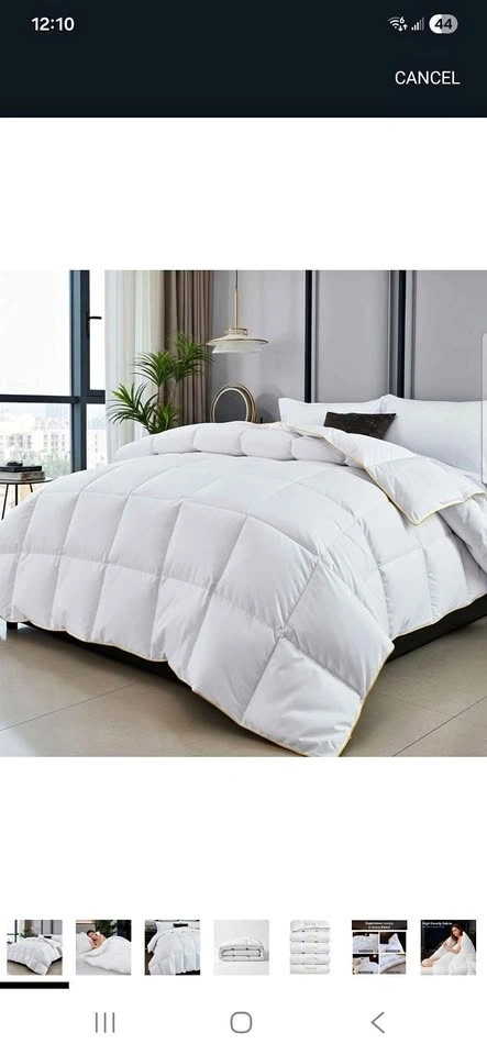 Brand new luxury goose feathers down quilted duvet. Skin-friendly 100% down-proof fabric cover. Anti-allergy hotel quality warm quilt, suitable for all seasons and machine washable. Size: 106 x 90 inch (Super-King). From a pet-free and smoke-free home.