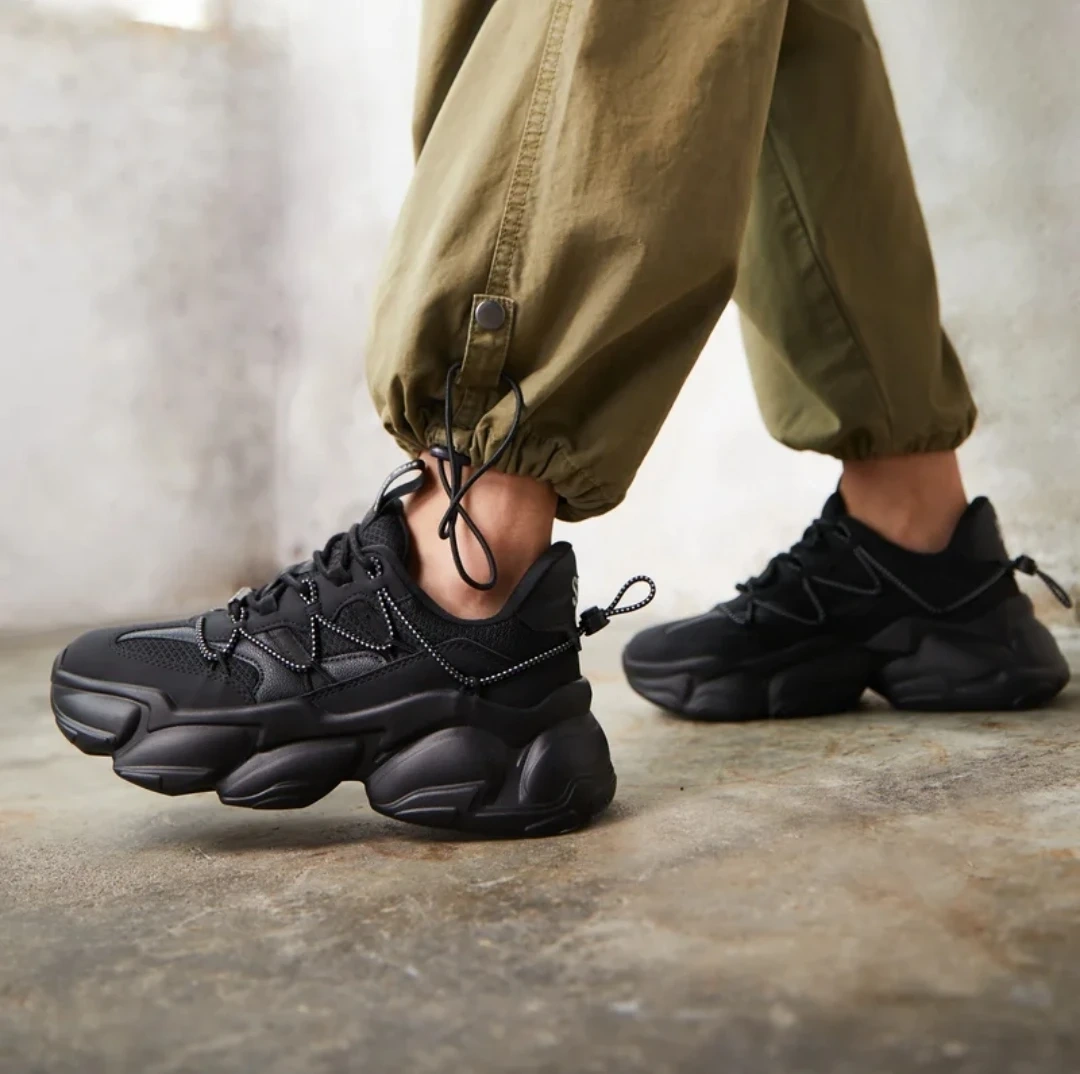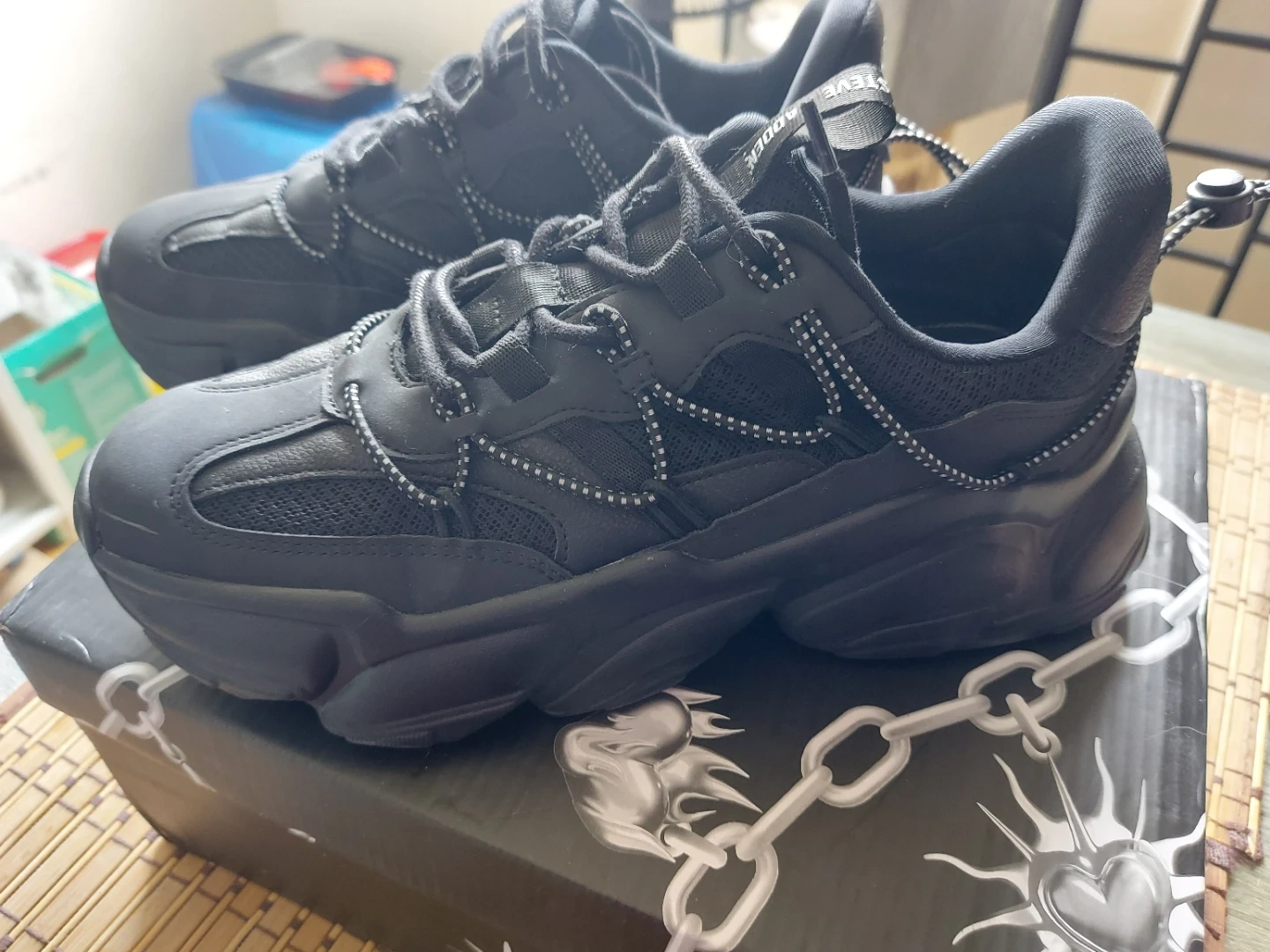 Black Steve Madden Spectator sneakers with a fabric and PU upper. Features fabric lining, PU sock, and leather-locked outsole. Worn once, size too small for me.