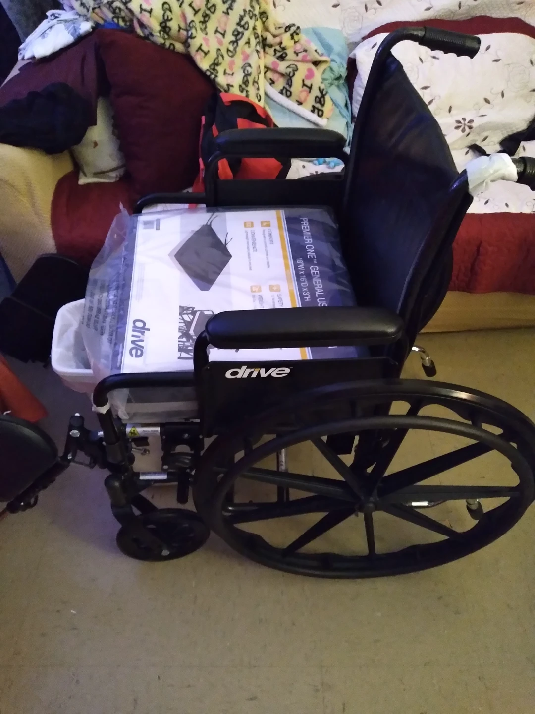 This is a Drive Medical Premier One General Use wheelchair. It's a standard wheelchair with 18" W x 16" D x 3" H seat dimensions. It's designed for convenience.
