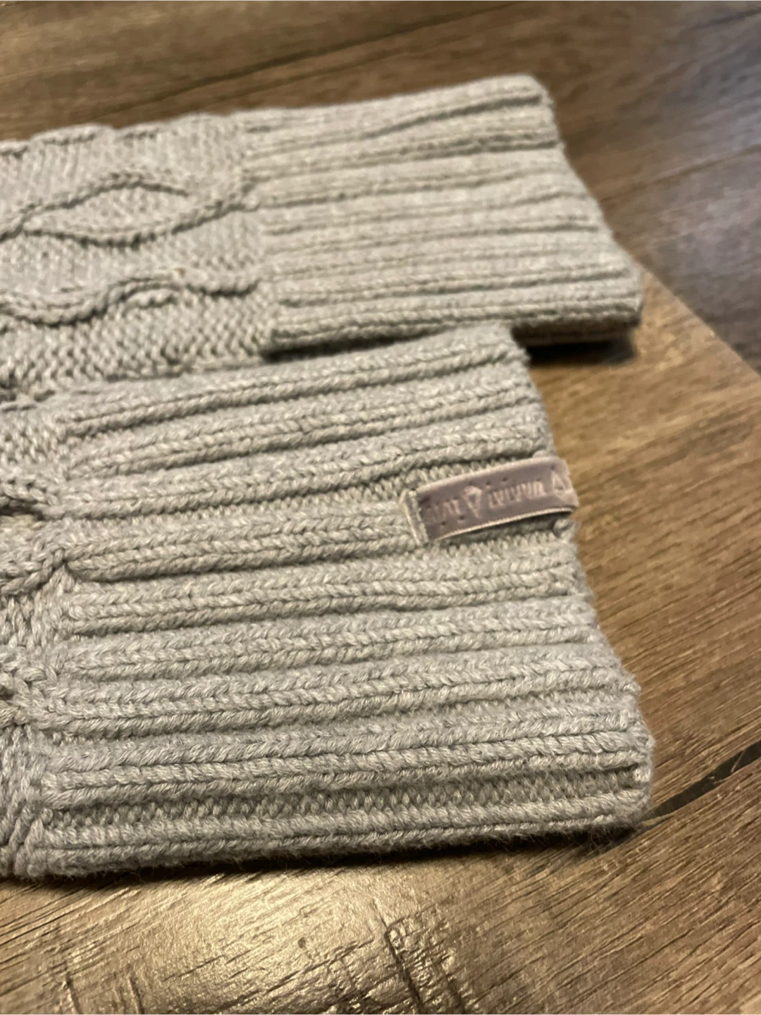 Ivivva leg warmers featuring a stylish grey cable knit pattern.