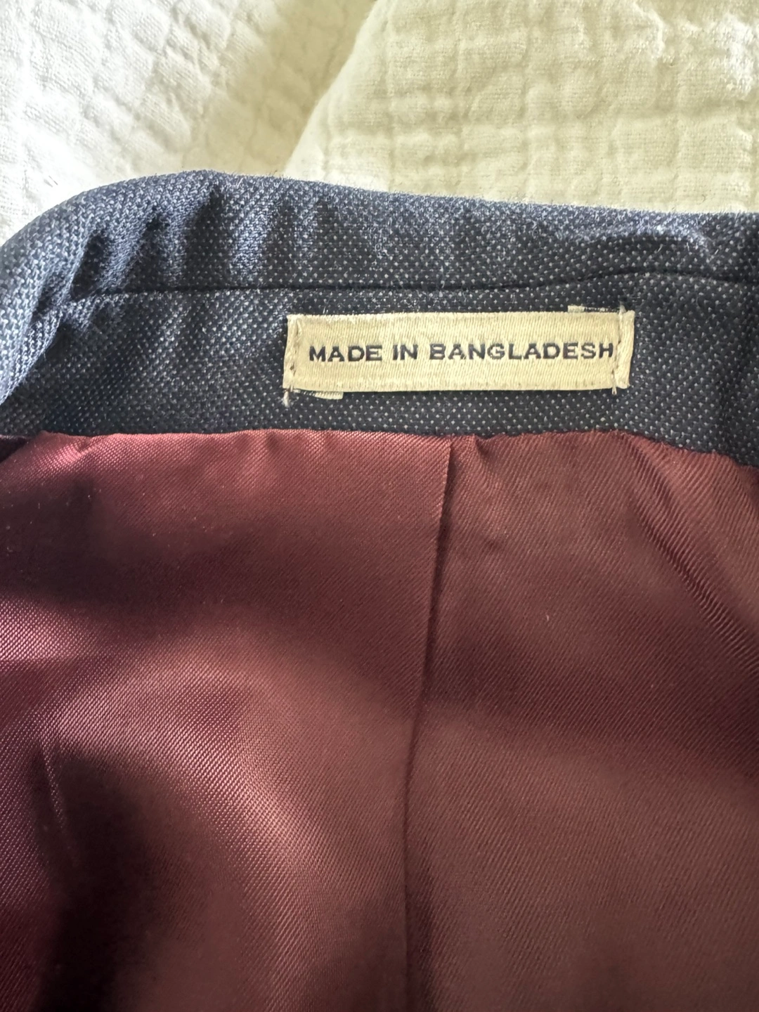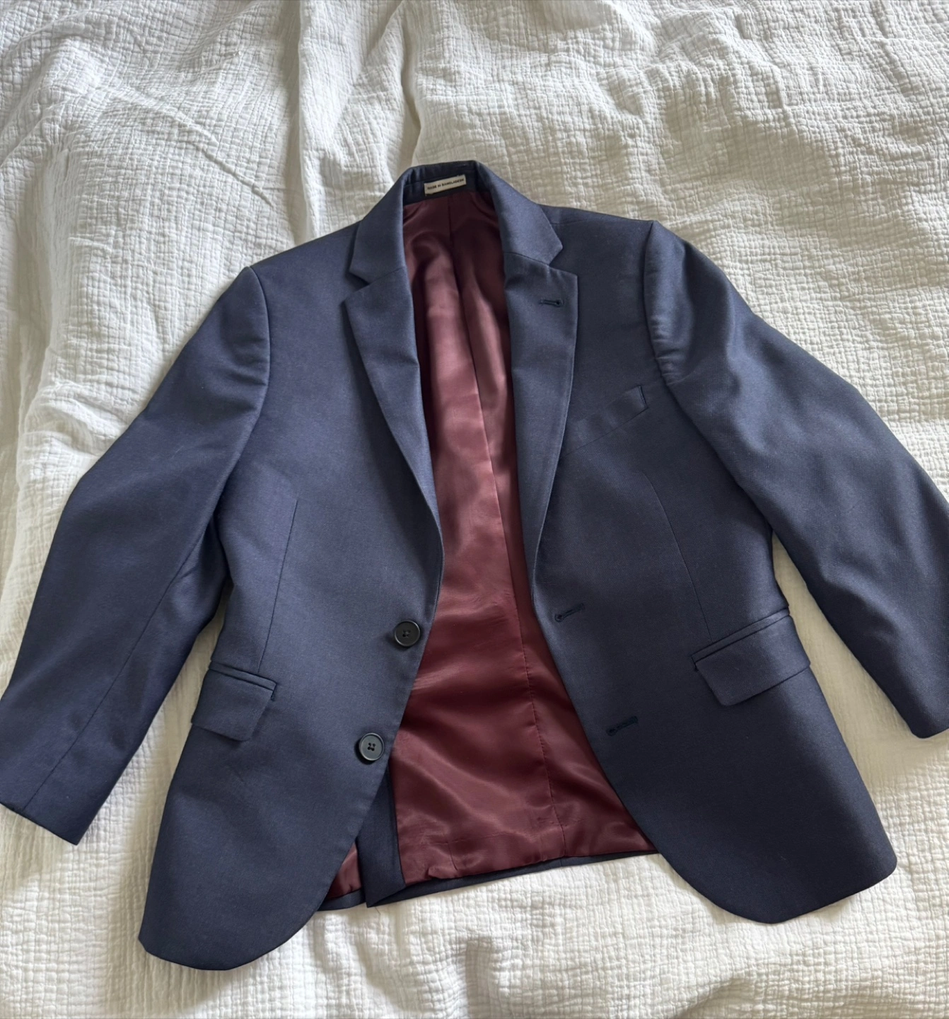 Selling a Joseph Abboud suit in size 10R. The material is 68% Polyester, 29% Rayon, and 3% Elastane. It's in great condition and ready for a new occasion (Wedding or Confirmation) Bought at Men’s Warehouse. Only worn once. Hem can be taken down.